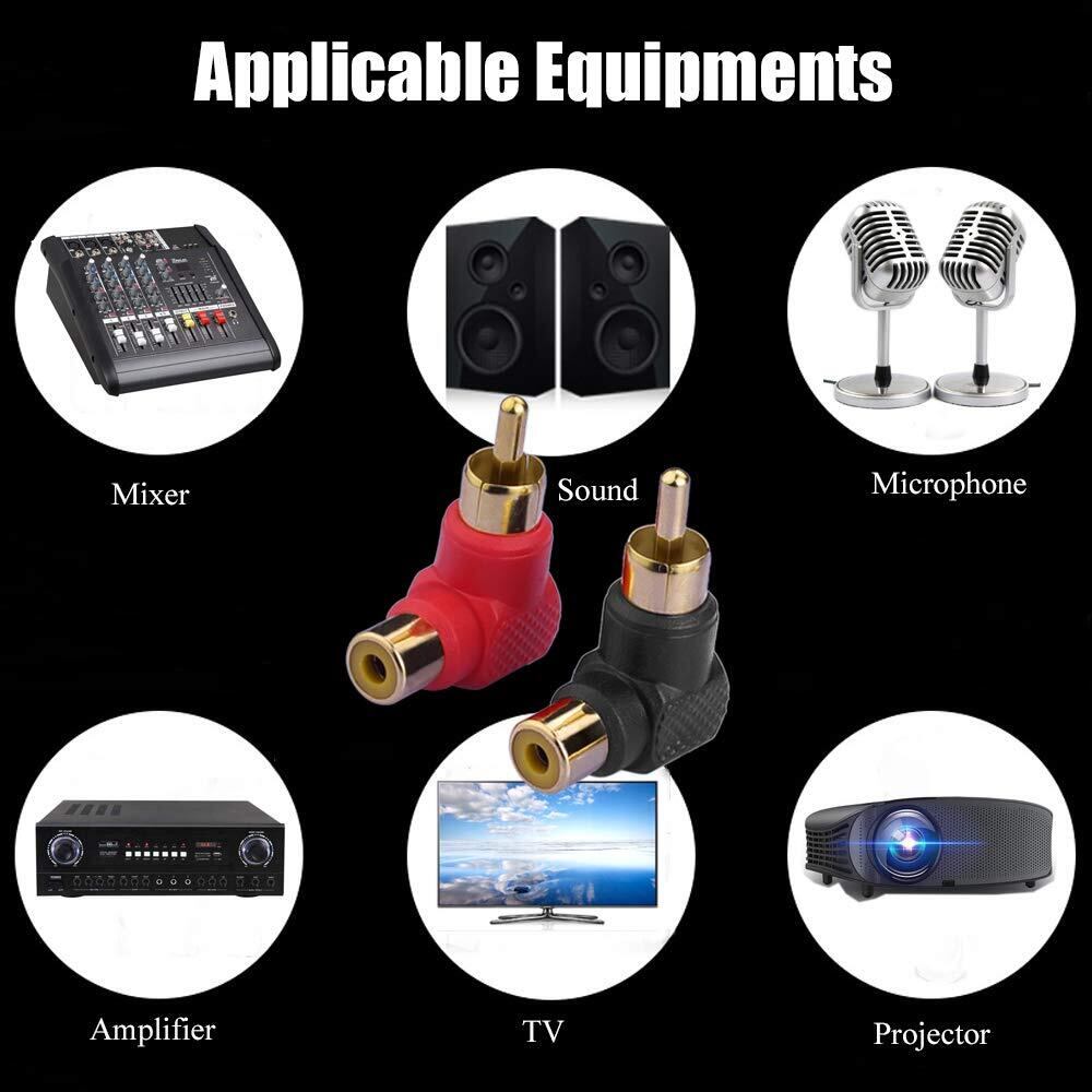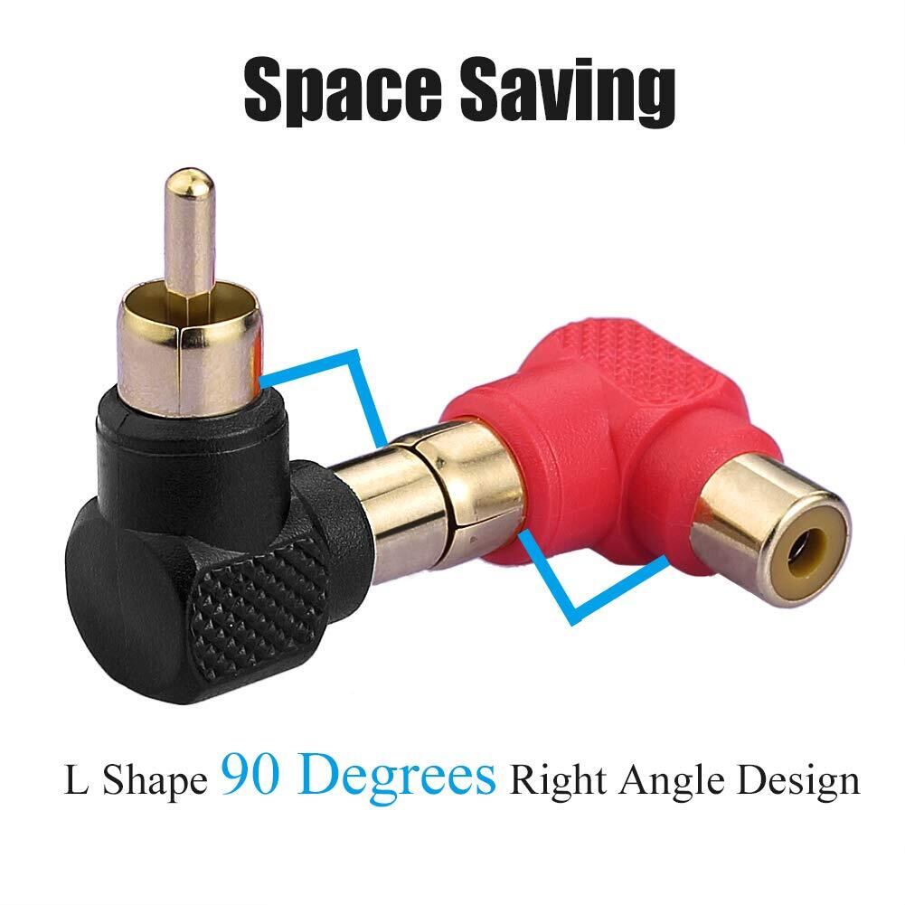 RCA変換アダプタ 90度RCA直角コネクタ オス-メス L型変換プラグ (2個入り)