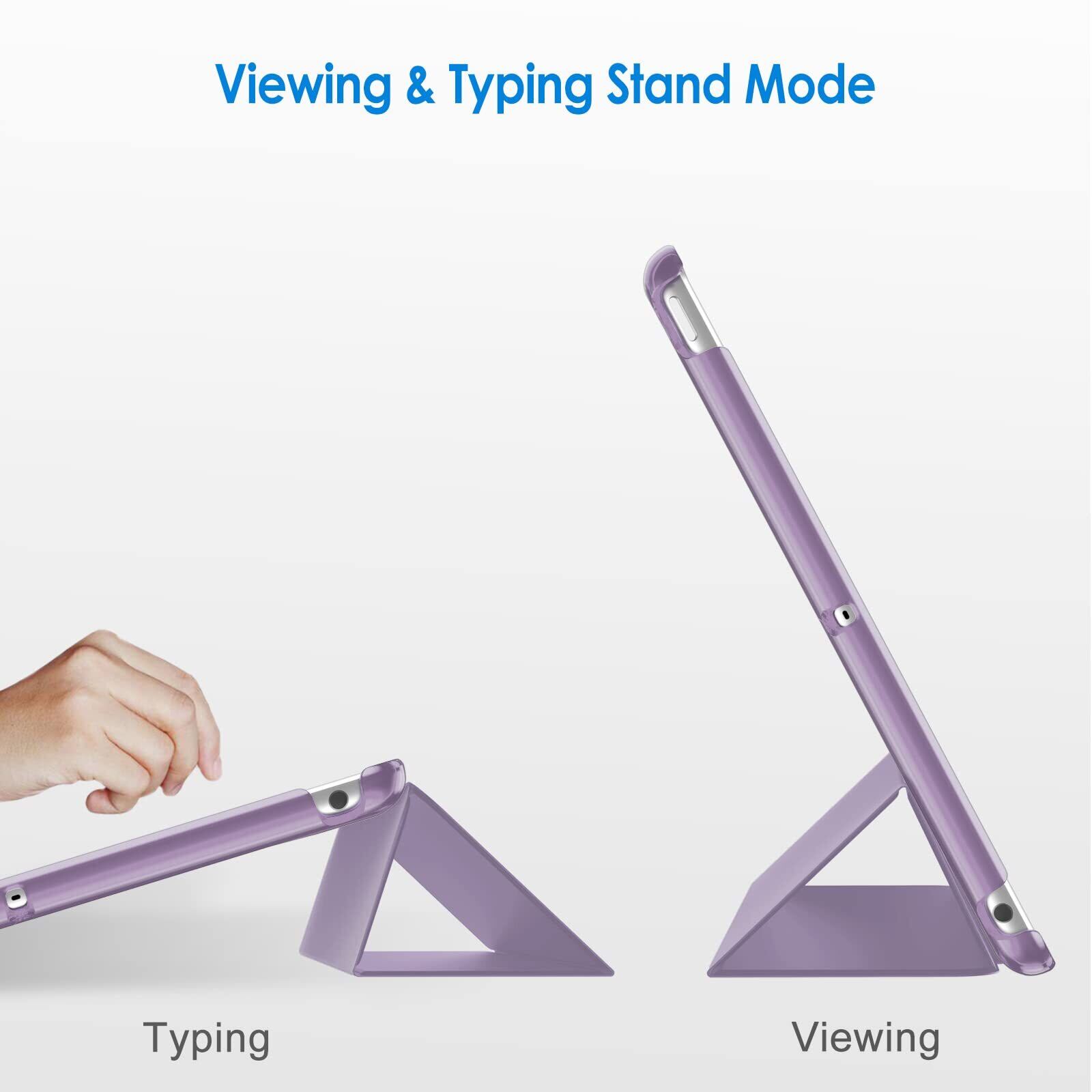 マグネット内蔵、オートスリープとオートウェイクアップ機能が付きます。三つ折りフロントカバーにより、視聴とタイピングに合わせた2通りのスタンド角度を調整できます。