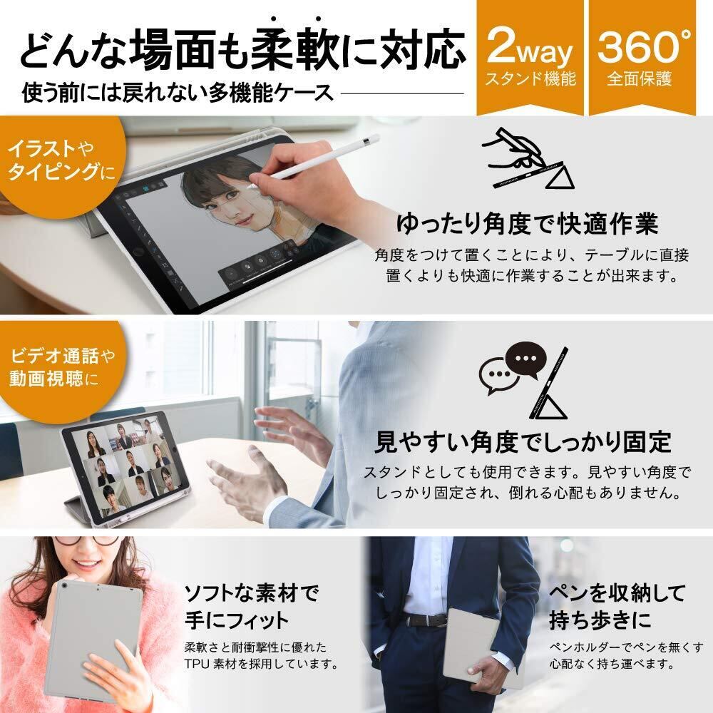 【対応機種】:iPad 10.2 (第9世代 2021/第8世代 2020/第7世代 2019)用【対応モデル番号】:A2602 A2604 A2603 A2605 A2270 A2428 A2429 A2430 A2197 A2200 A2198【注意】:※他の世代のiPad 10.2には対応しておりません。※ApplePencilは付属しておりません。