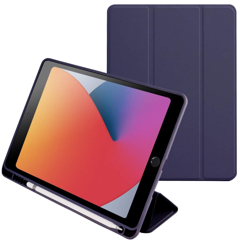 ベルモンド iPad 第9世代 (2021) / iPad 第8世代 (2020) / iPad 第7世代 (2019) 用 ケース カバー ペン収納 カバー 三つ折スタンド オートスリープ ウェイク機能 アイパッド 10.2インチ ネイビー B0230 NV