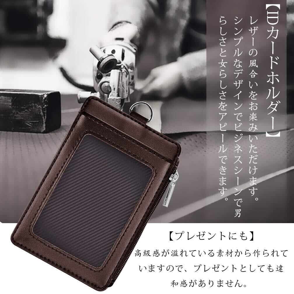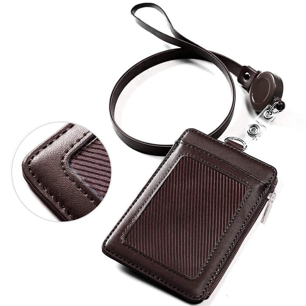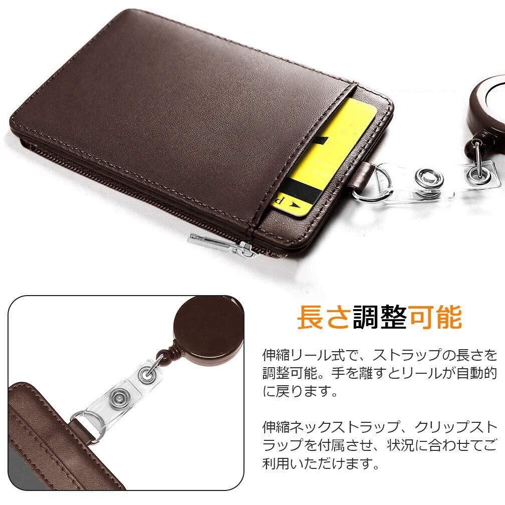 id カードホルダー ネームホルダー レザー パスケース 伸縮リール式 ネックストラップ ジッパー 付き 社員証 名札 定期入れ ケース 縦型 メンズ&レディース 機能性 プレゼント ポケット三つ ブラウン By VIAKY