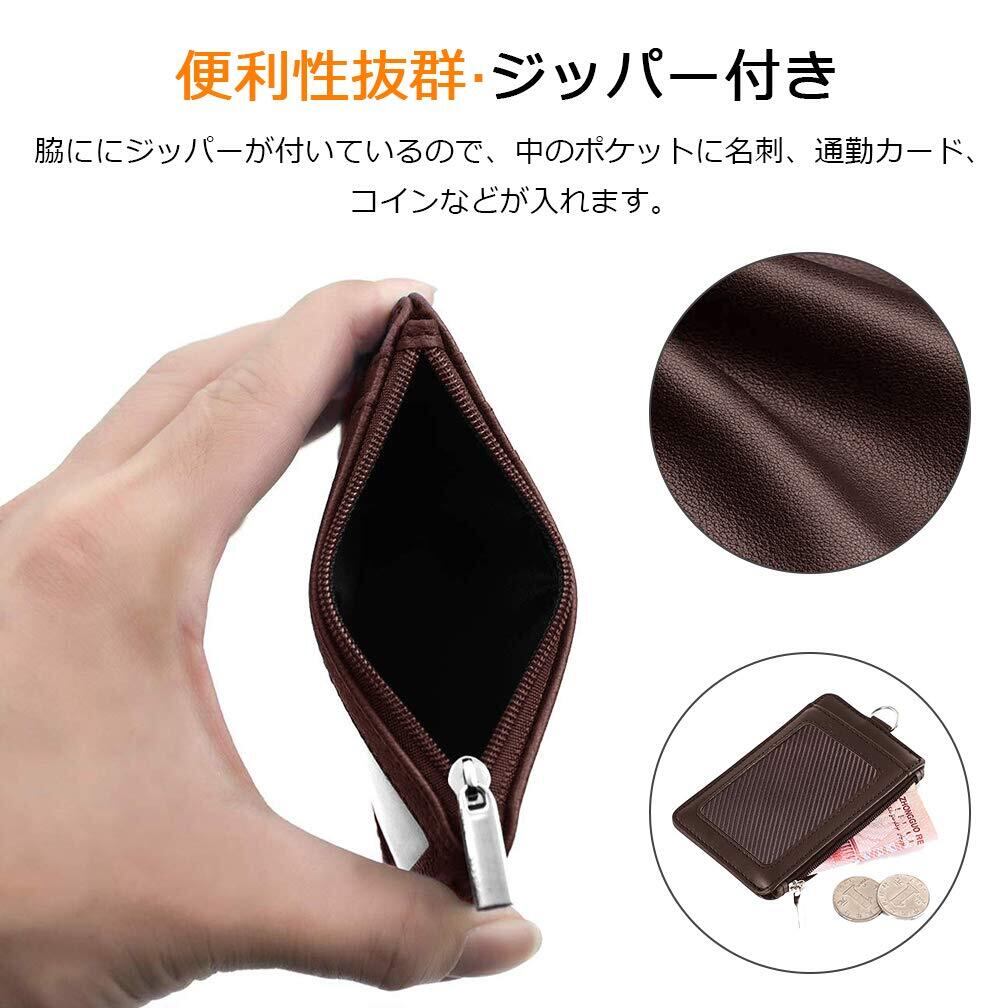 ④「便利性抜群·ジャバー·背面ポケット付き」脇ににジッパーが付いているので、中のポケットに名刺、通勤カード、コインなどが入れます。さらに背面にポケットが付いているので、大容量でIDカードなどを有効に整理して、カードを探す時間が省かれ、スマートに行動することができます。