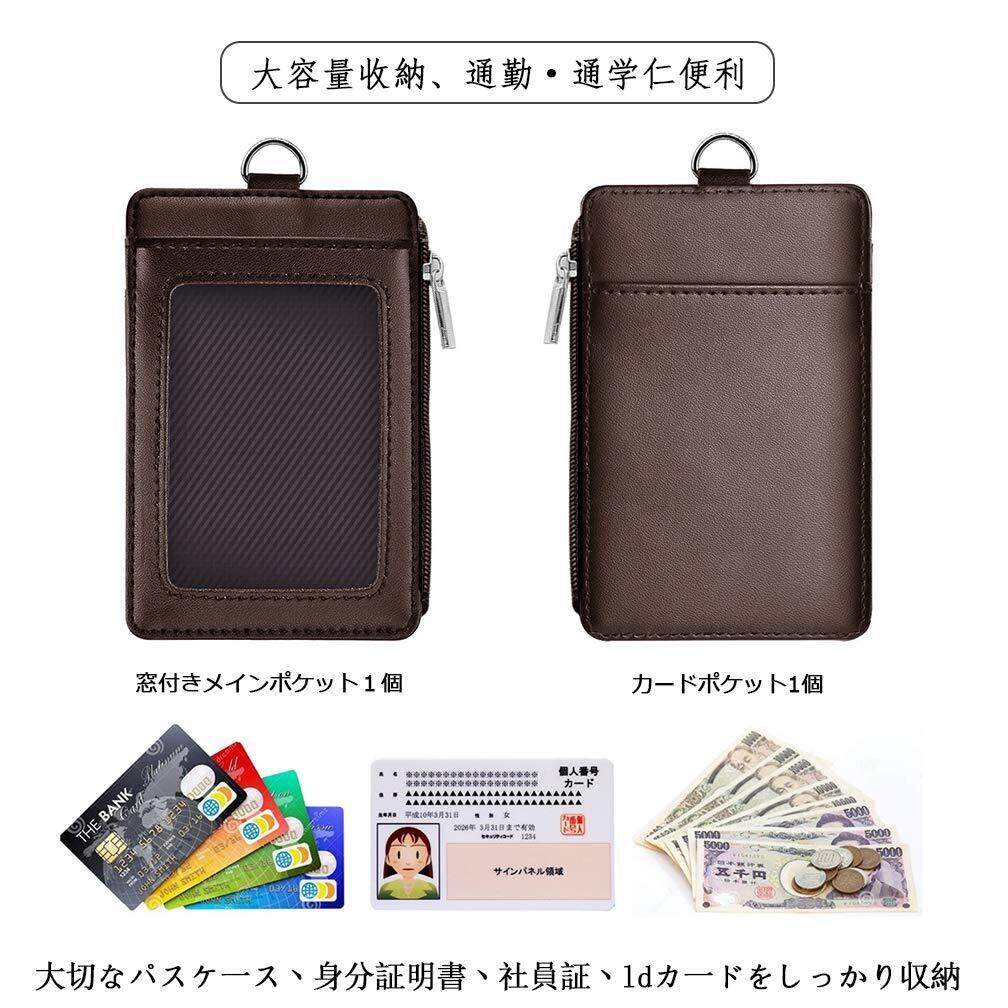 ①「上質な材質 」上質な合皮を使用し、スムーズで手触り良いです。本革だから、ほかのより耐久性を持っています。素材:⑴パスケース本体:レザー ⑵付属ストラップ:レザー ⑶ネックストラップ/PUレザー窓フィム:PVC