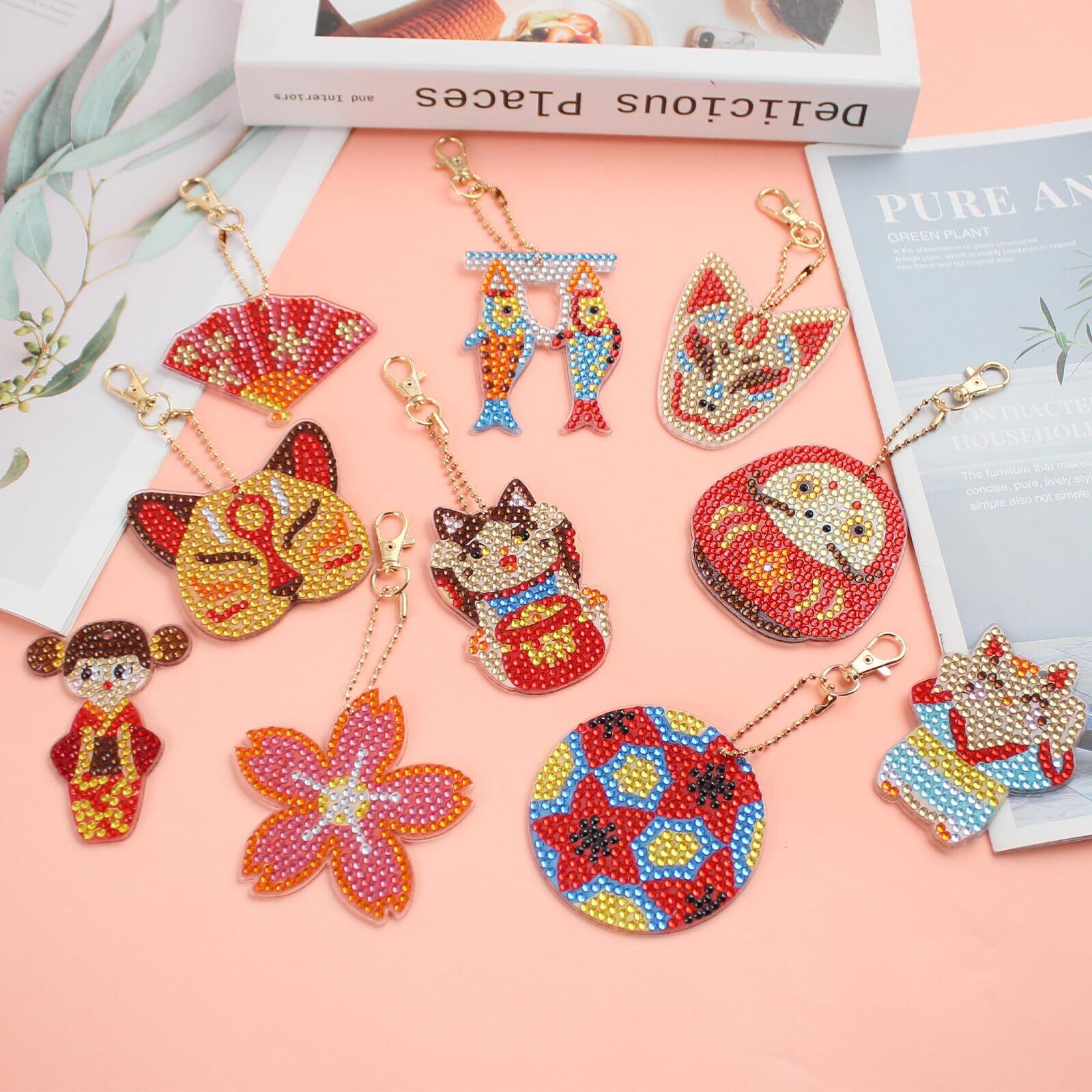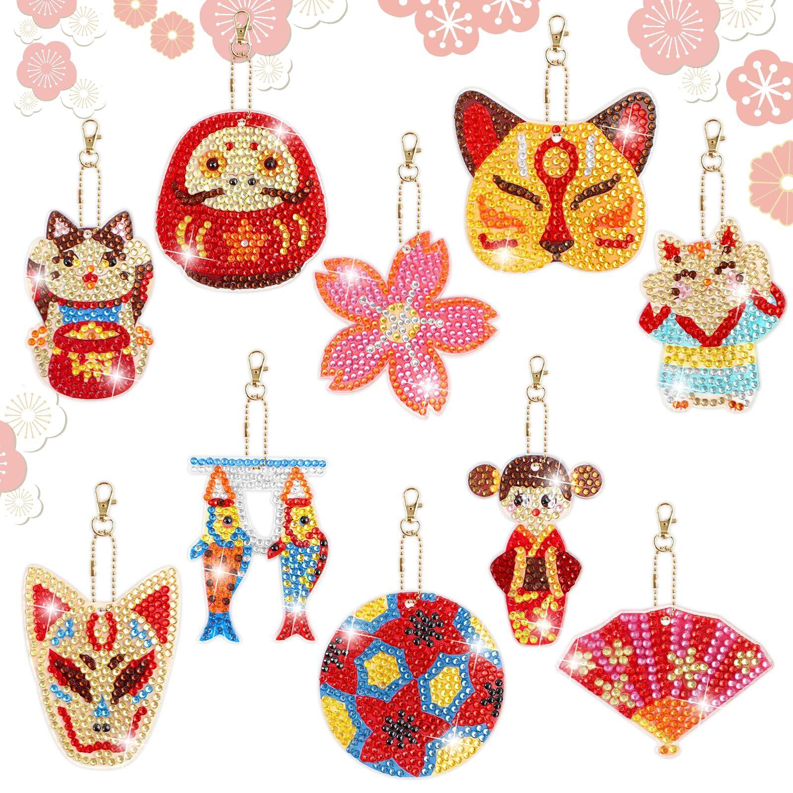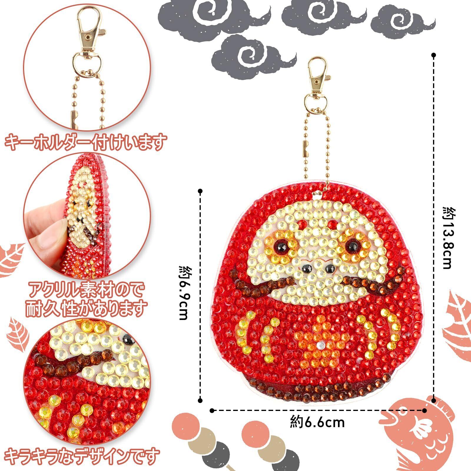 LUCKYBEE ダイヤモンドアート キーホルダー キット DIY ダイヤモンドビーズ キーホルダー 5Dダイヤモンド塗装キット 和風ダイヤモンド キーホルダー キット手芸キット 初心者 大人 子供用 アートクラフト用品 和風10個入 チェーン付き