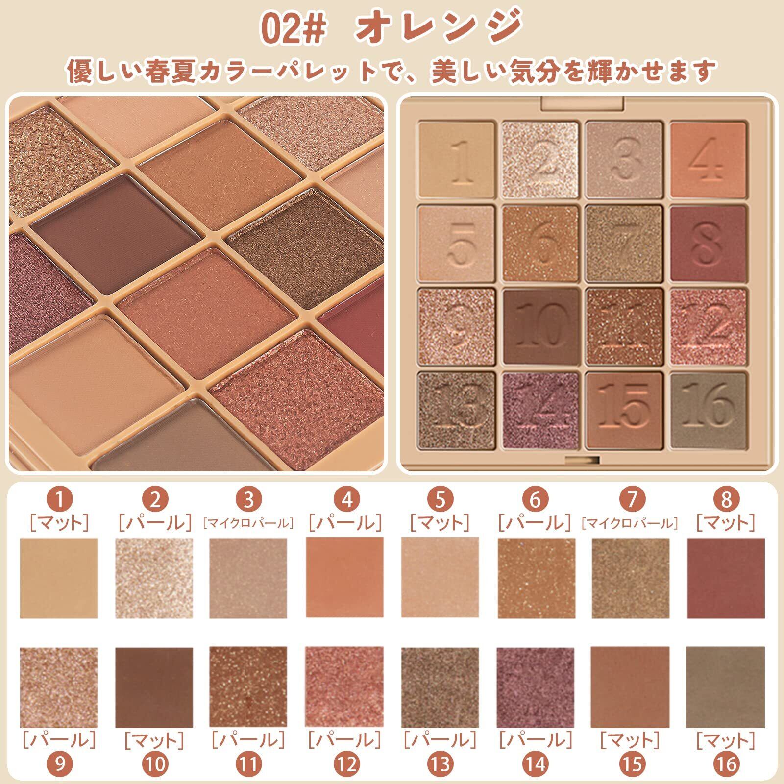 【2024春と夏おすすめ】blingseaya アイシャドウパ レット プロ用 プロアイパレット 赤 マットアイシャドウ 16色日常メイクパレット デュ アルユース防水 防汗 高発色 持続する アイシャドウ (03#オレンジ)
