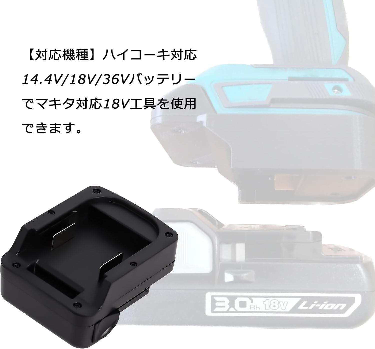 【対応機種】ハイコーキ対応14.4V/18V/36Vバッテリーでマキタ対応18V工具を使用できます。