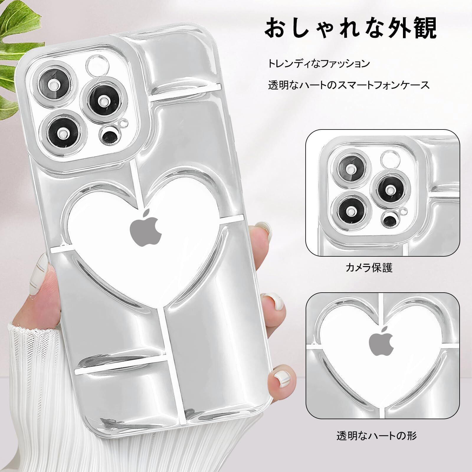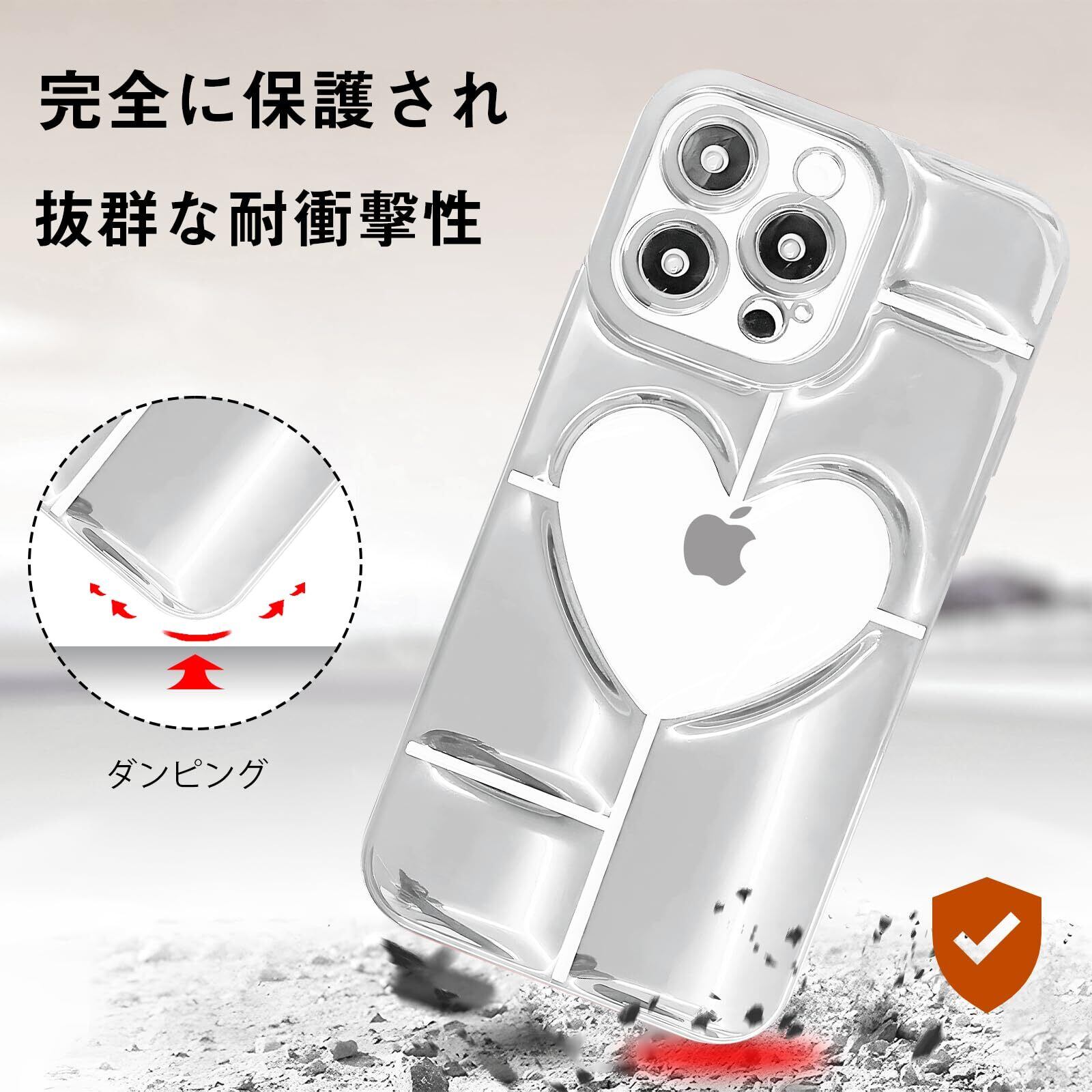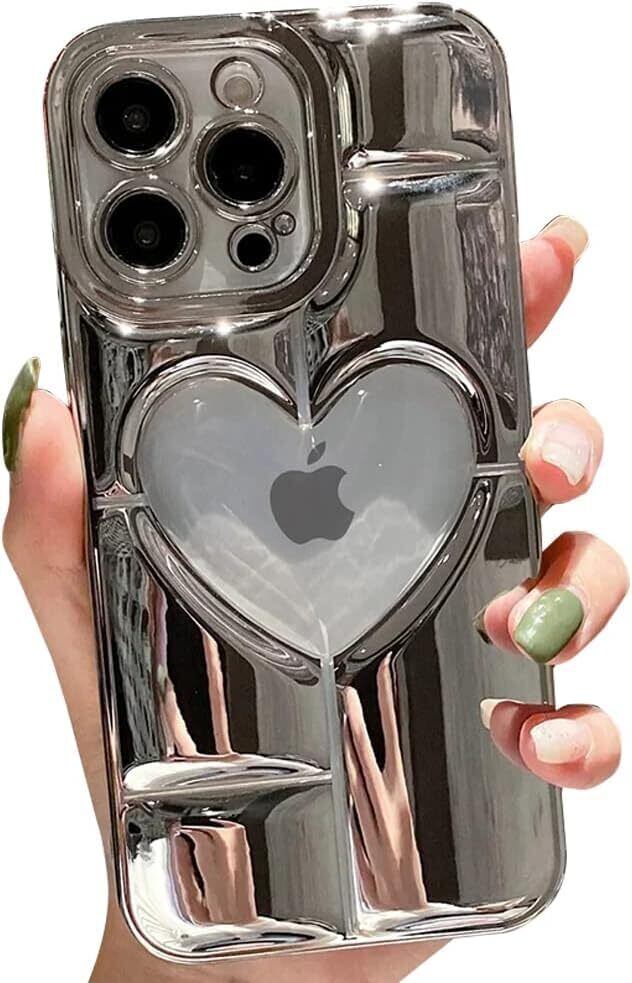 iPhone 14 Pro max 用 ケース 薄型 軽量 可愛い ハート クリア パターン 携帯ケース ソフト TPU素材 黄変防止 耐衝撃 全面保護 ワイヤレス充電対応 アイフォン 14 Pro max 用 ケース 6.7 インチ(silver)