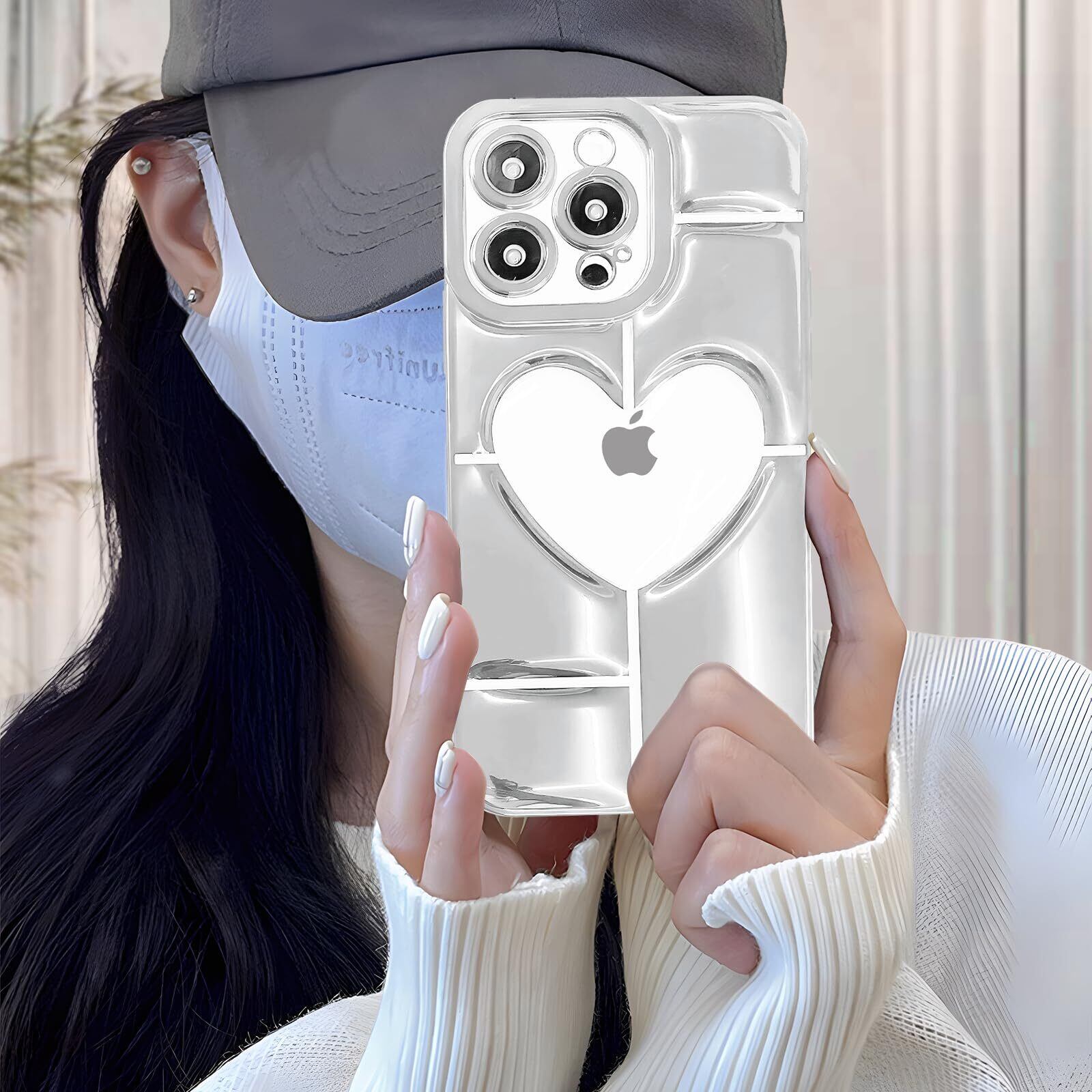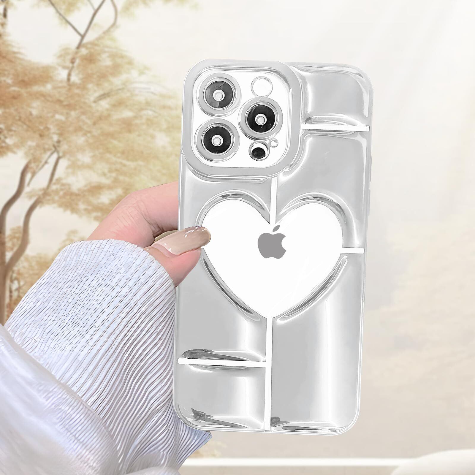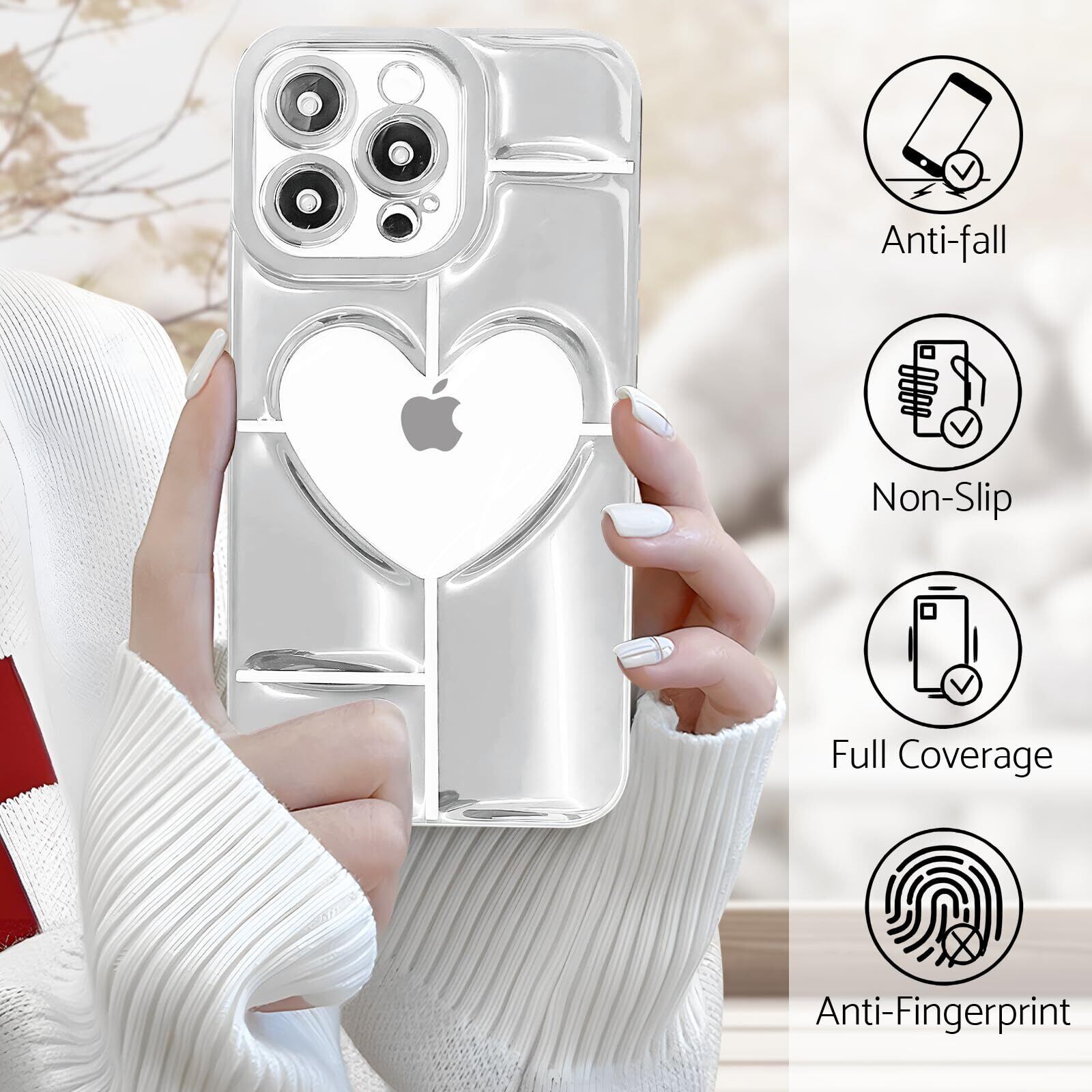 iPhone 14 Pro max 用 ケース 薄型 軽量 可愛い ハート クリア パターン 携帯ケース ソフト TPU素材 黄変防止 耐衝撃 全面保護 ワイヤレス充電対応 アイフォン 14 Pro max 用 ケース 6.7 インチ(silver)