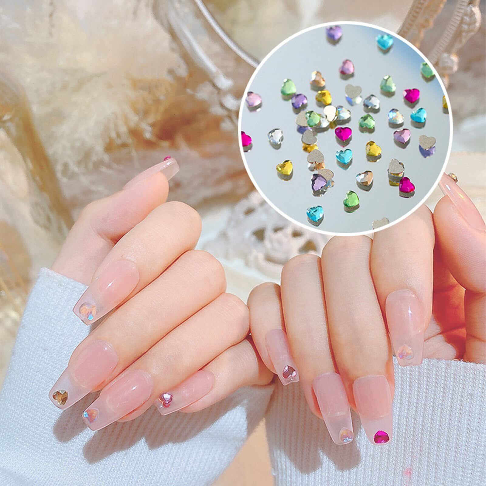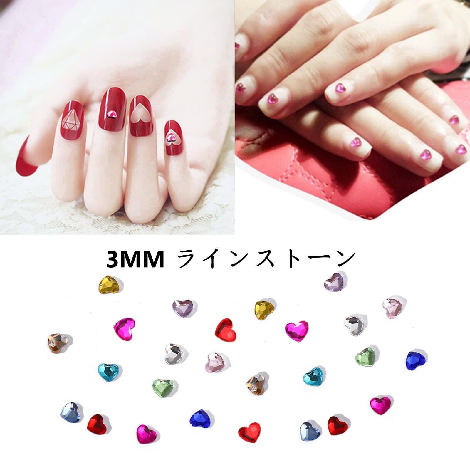 ハート ネイルストーン 約90個セット ネイルパーツ ハートストーン 立体 3mm 小さい ラインストーン キラキラ ガラスストーン クリスタル ジュエリーパーツ ネイルアート デコパーツ ランダム色 (カラフル)