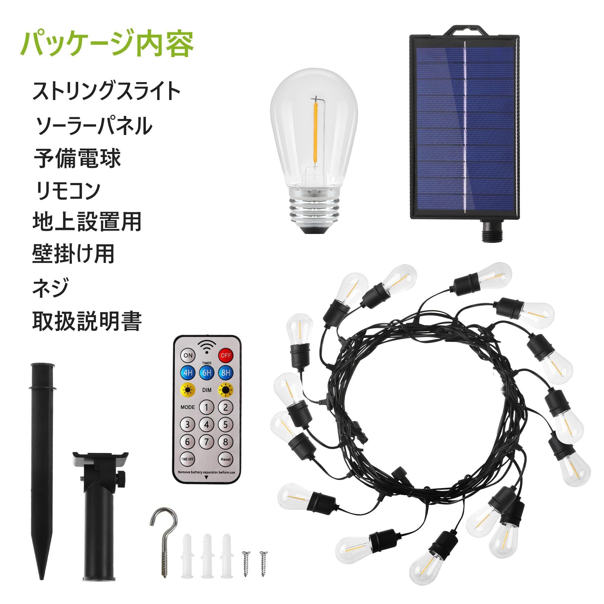 ソーラーストリングライト 17m 防雨型 夜間自動点灯 4つの調光モード PC素材 電球色 2700k15+1個 LED電球 クリスマス 結婚式 パーティー お祭り電飾 屋内屋外 庭ライト