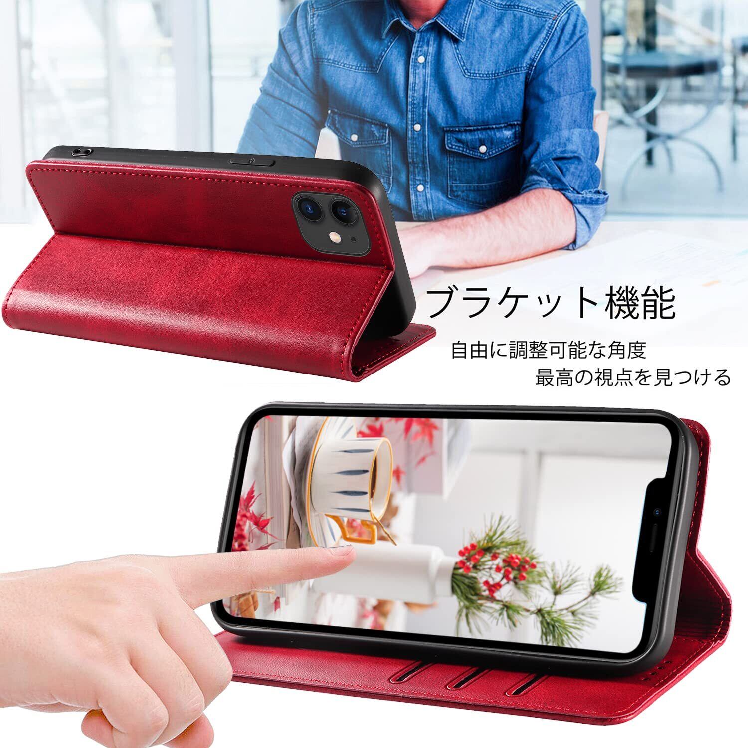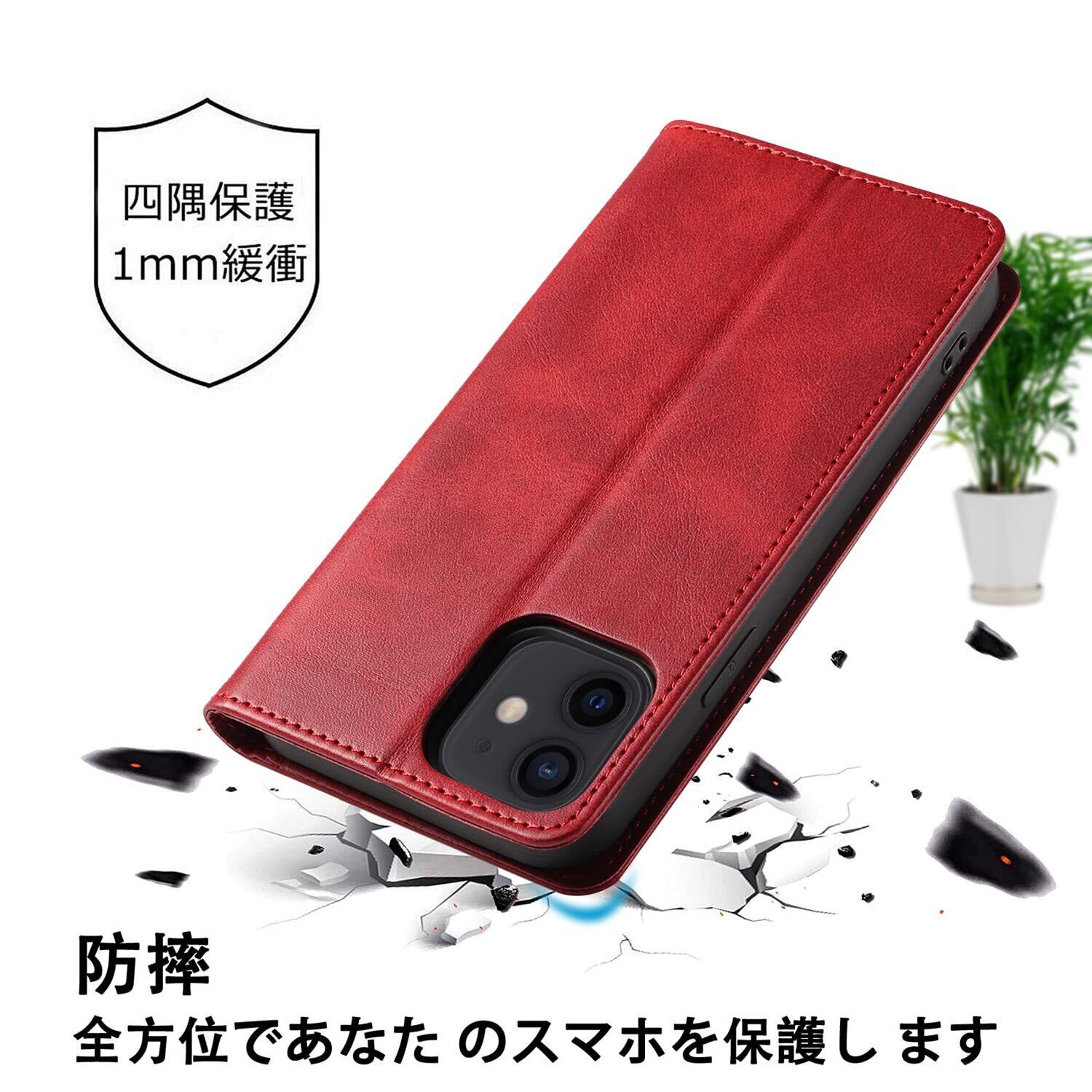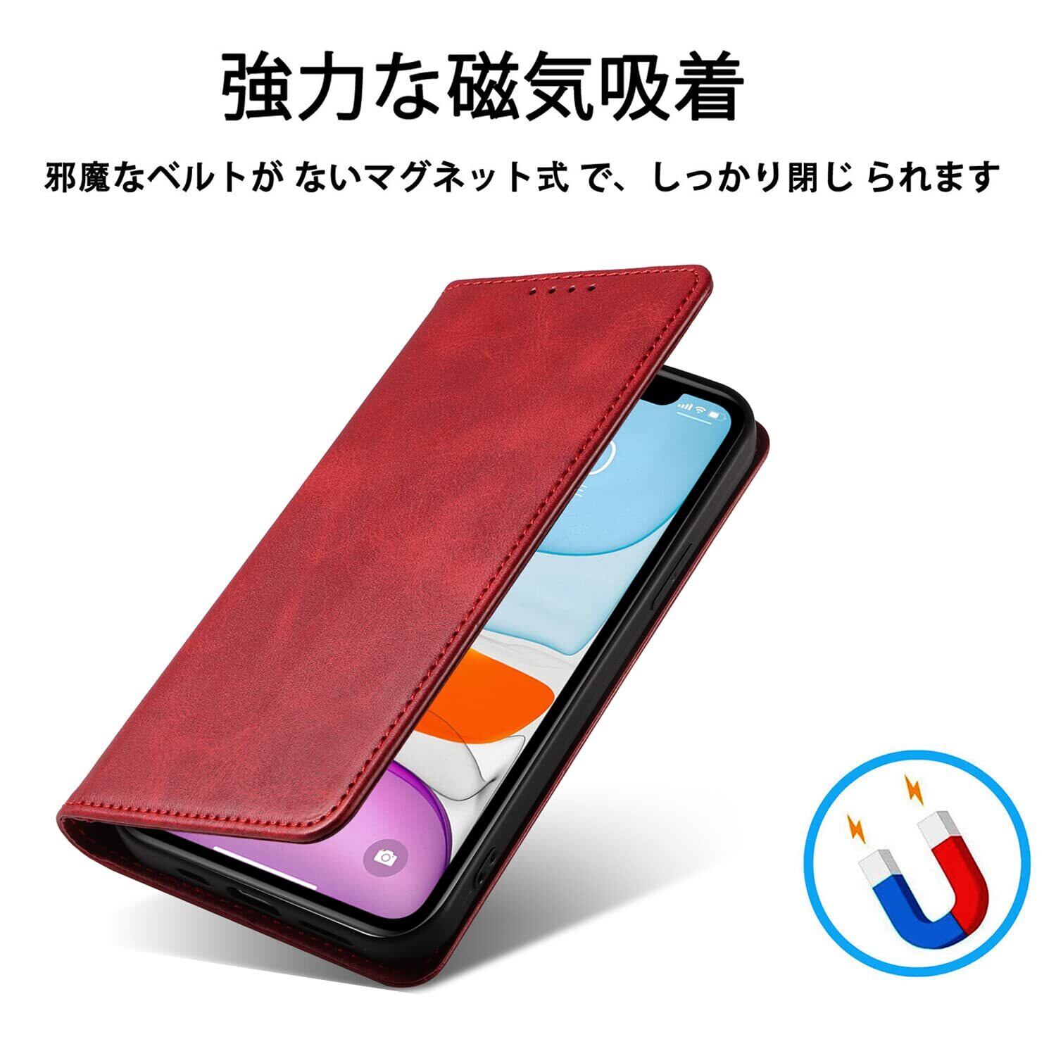 iPhone 11 ケース イフォン11 スマホケース 手帳型 携帯カバー レザー 耐衝撃 軽量 着脱しやすい 放熱性 マグネット式 カード収納 スタンド機能 iphone 11 対応 360度保護 PinLiSheng (レッド, iphone 11)