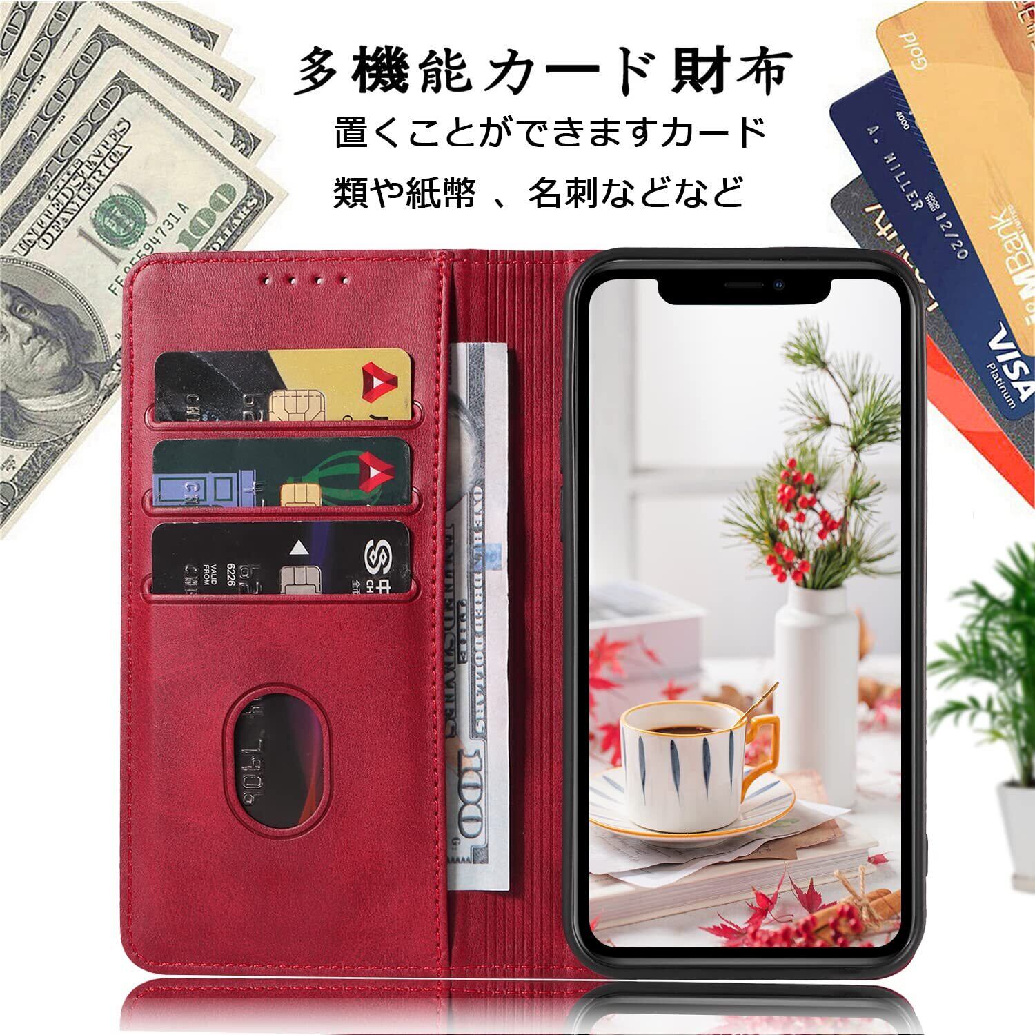 【カード収納】内側にはのカード入れとフリーポケットがつき、名刺や定期券の収納に優れているアイフォン ケースです。普段の生活に便利をもたらします。