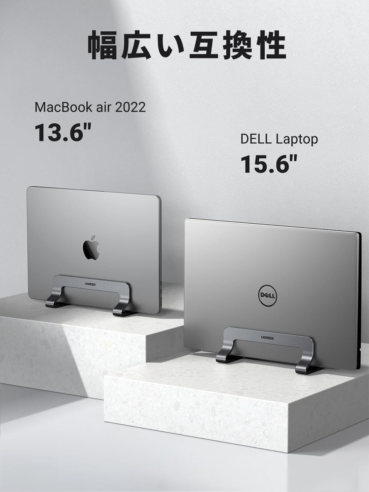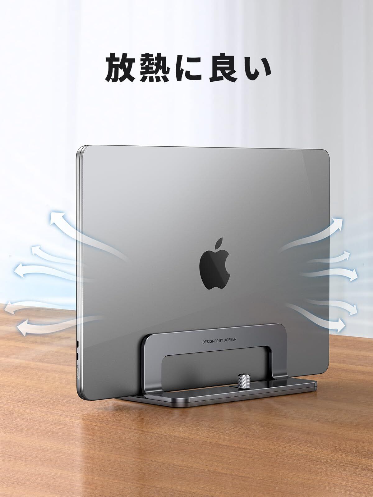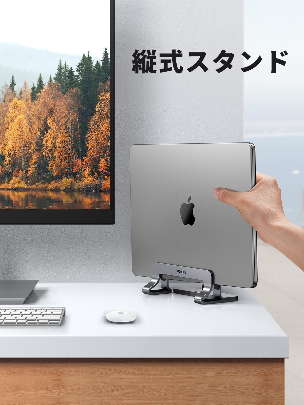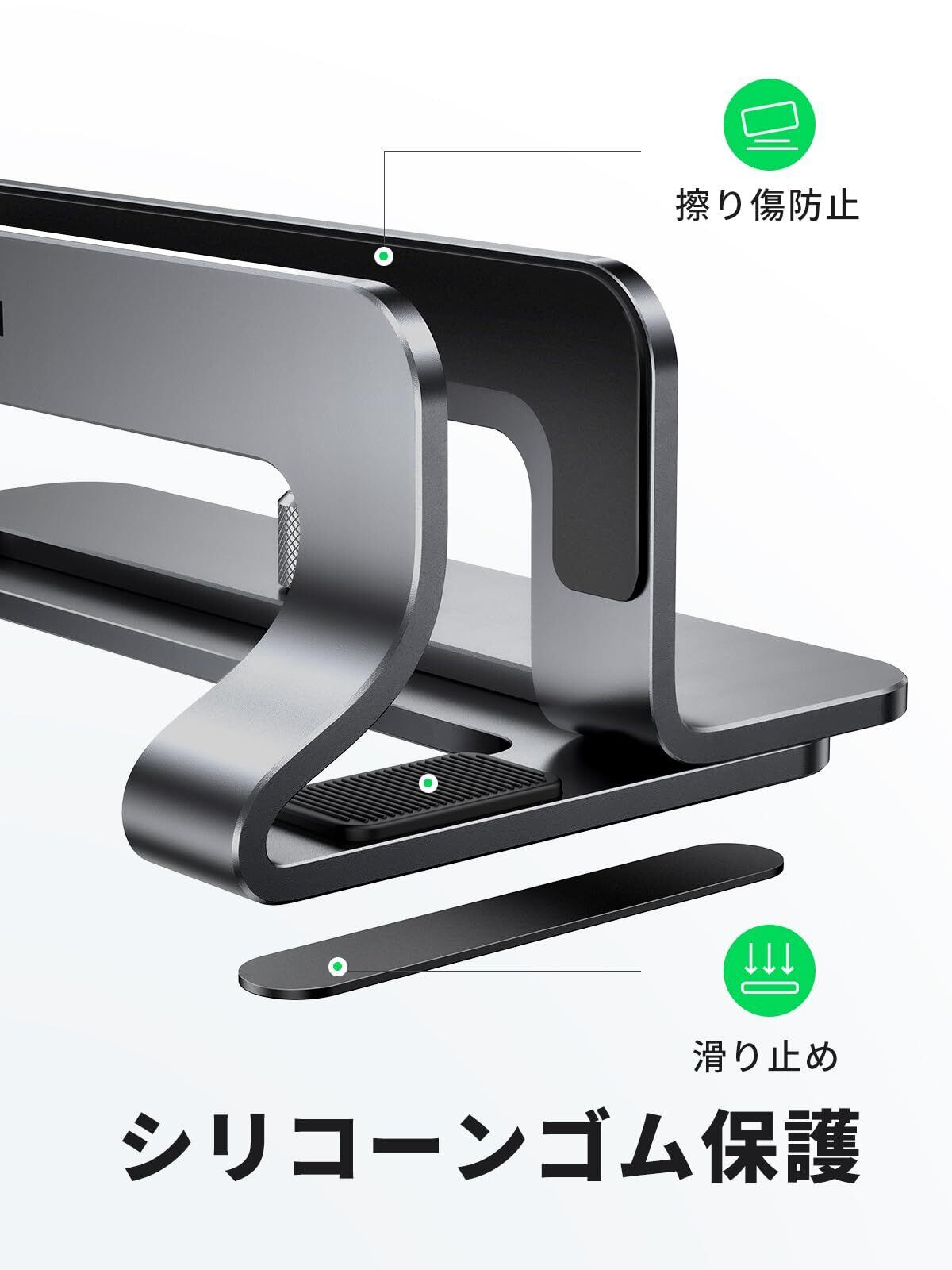 UGREEN 縦型 ノートパソコンスタンド pcスタンド 縦置き 収納 幅調整可能 アルミ合金製 シリコーンゴム傷防止 全機種対応Mac/Surface/iPad/HPなど(グレイ)