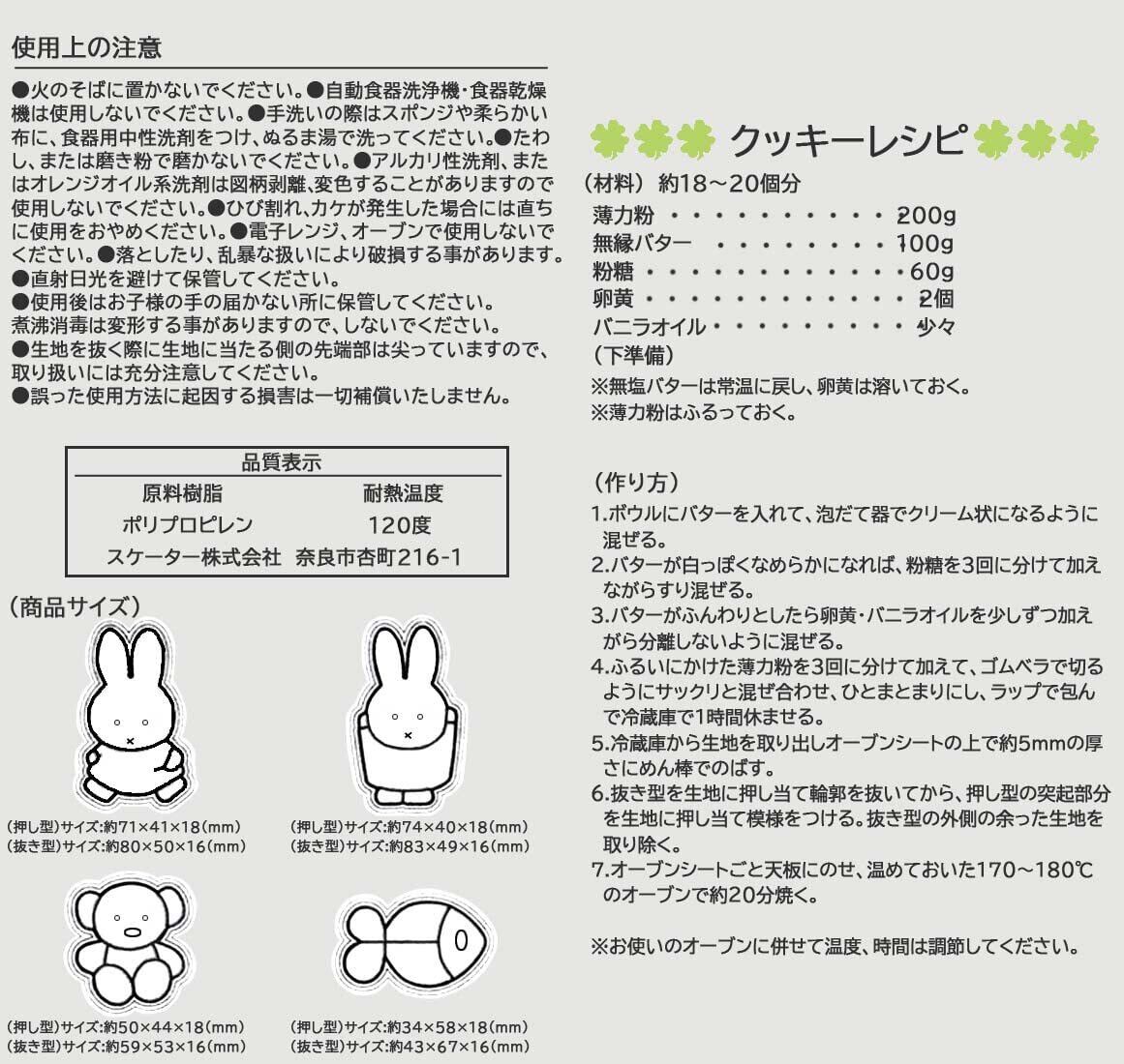 スケーター(Skater) スタンプクッキー型 食パン抜き型 ミッフィー 4個セット CSM1-A