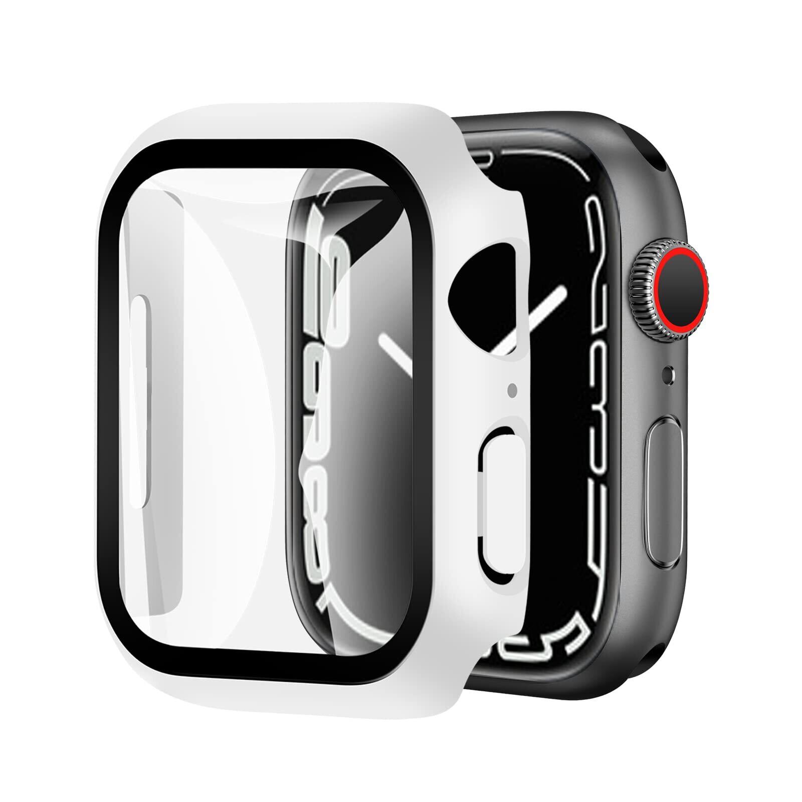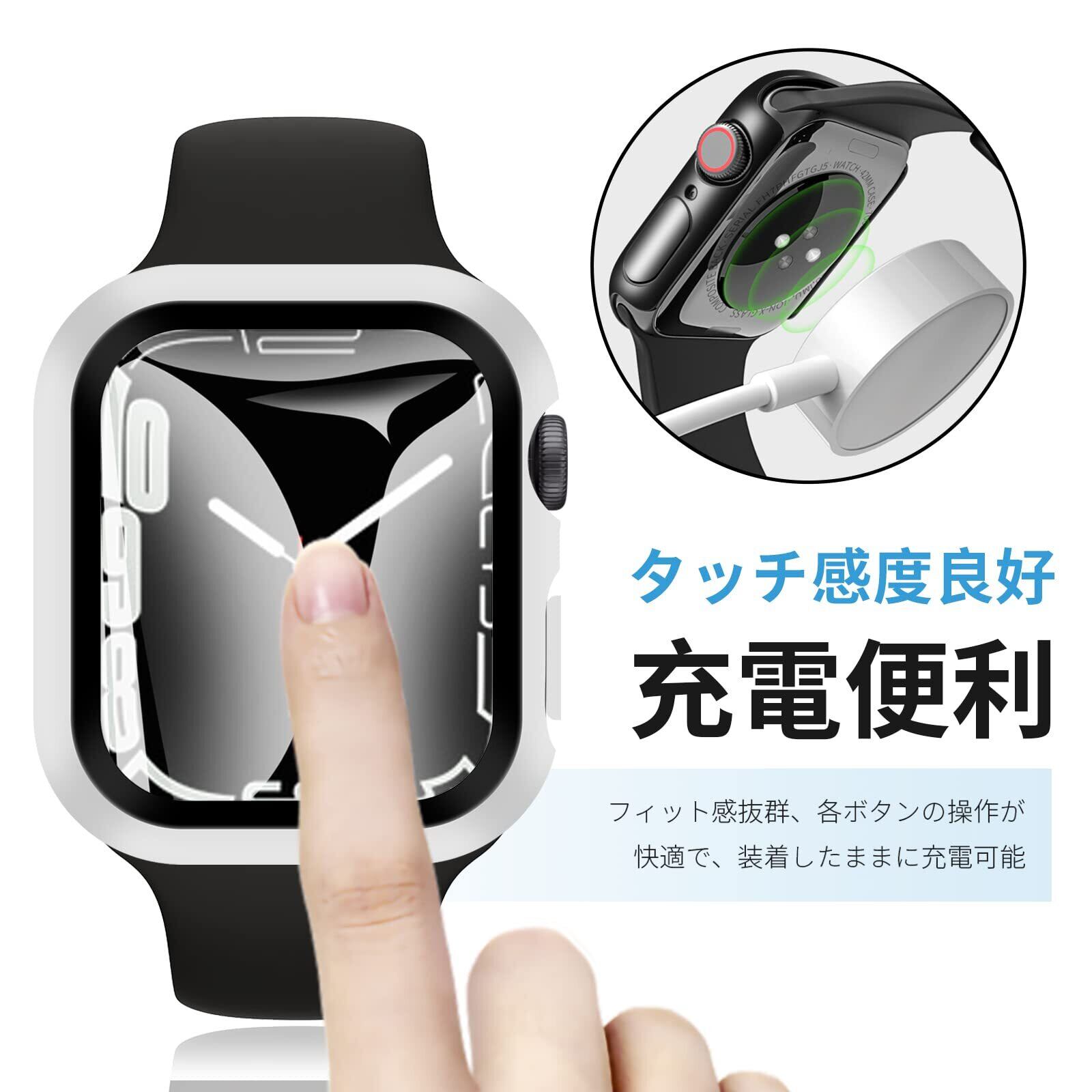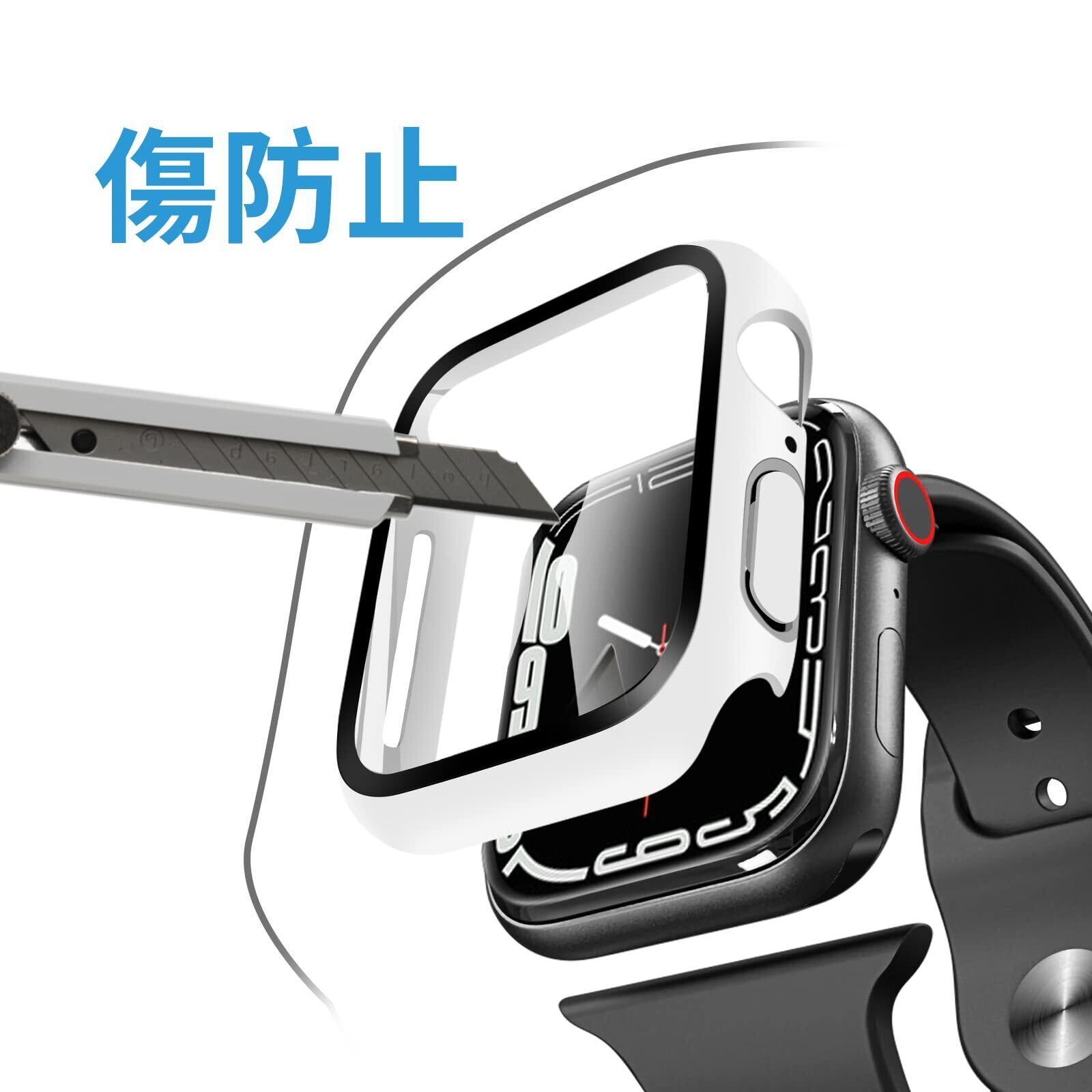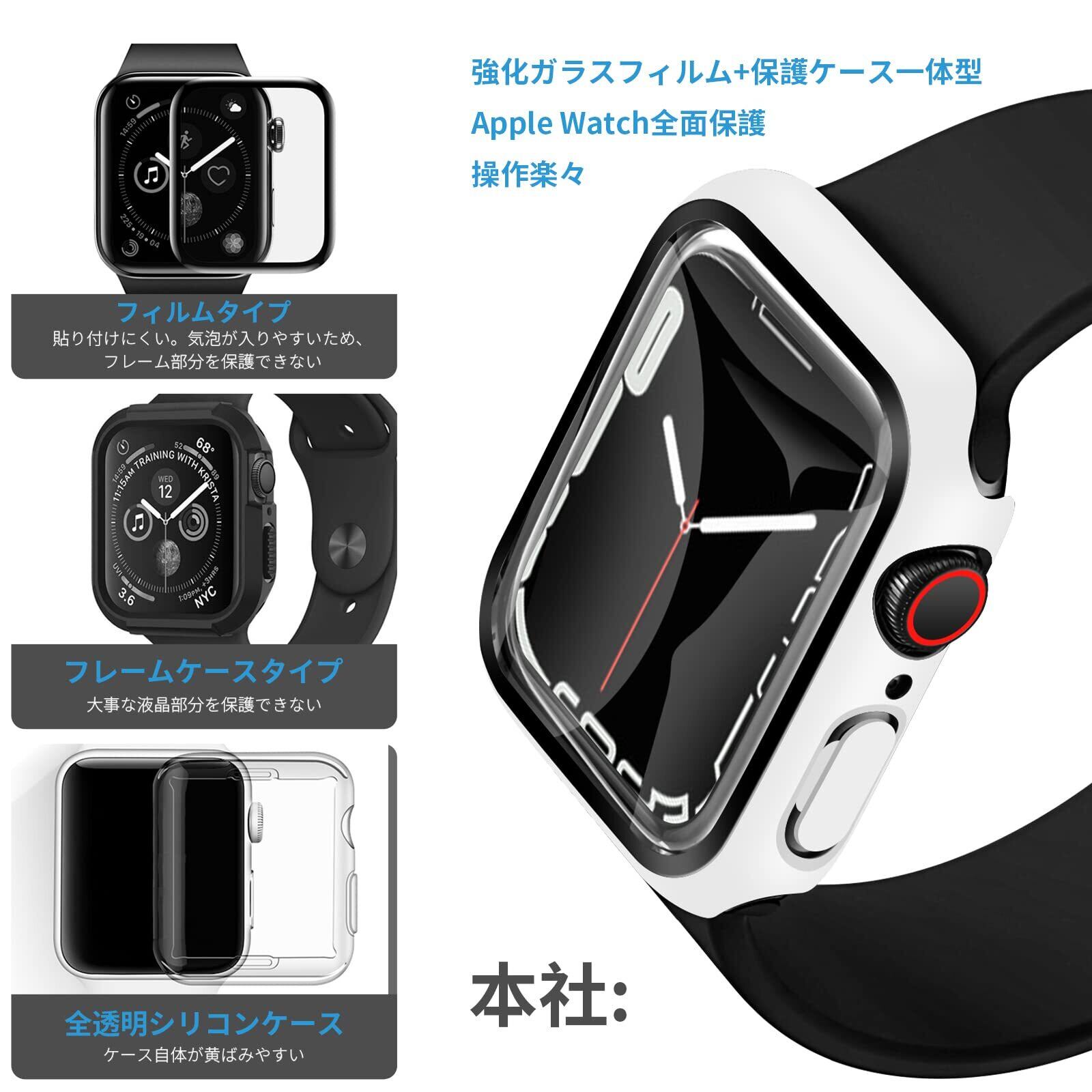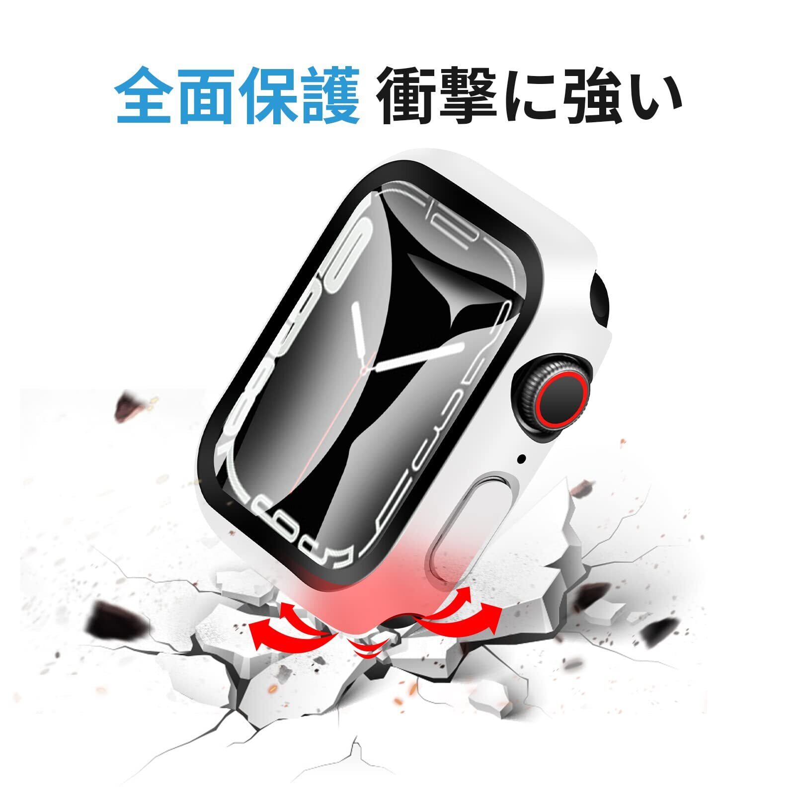Apple Watch 用 ケース Apple Watch Ultra 2/Ultra/10/9/8/7/SE2/6/SE/5/4 アップルウォッチ保護カバー ガラスフィルム 一体型 PC素材 全面保護 超薄型 装着簡単 耐衝撃 高透過率 指紋防止 傷防止 (45mm,ホワイト)