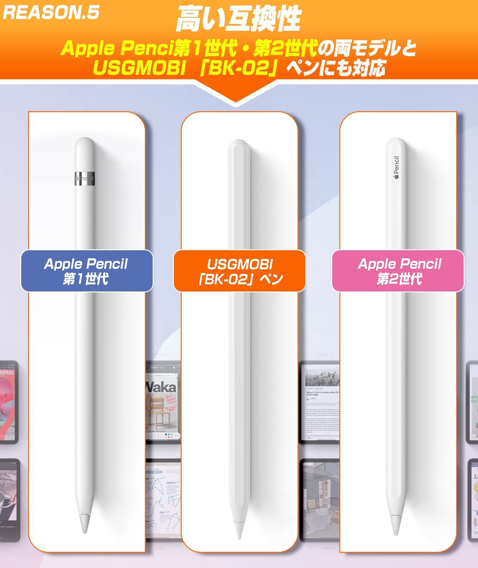 【高い互換性】Apple Penci第1世代と第2世代の両モデルとUSGMOBI「BK-02/BK-03」ペンにも対応しています。iPadにフィルムを貼り付けても使用できます。ペーパーライクフィルムと一緒に使用すれば、紙に書いているような操作感を感じられます。