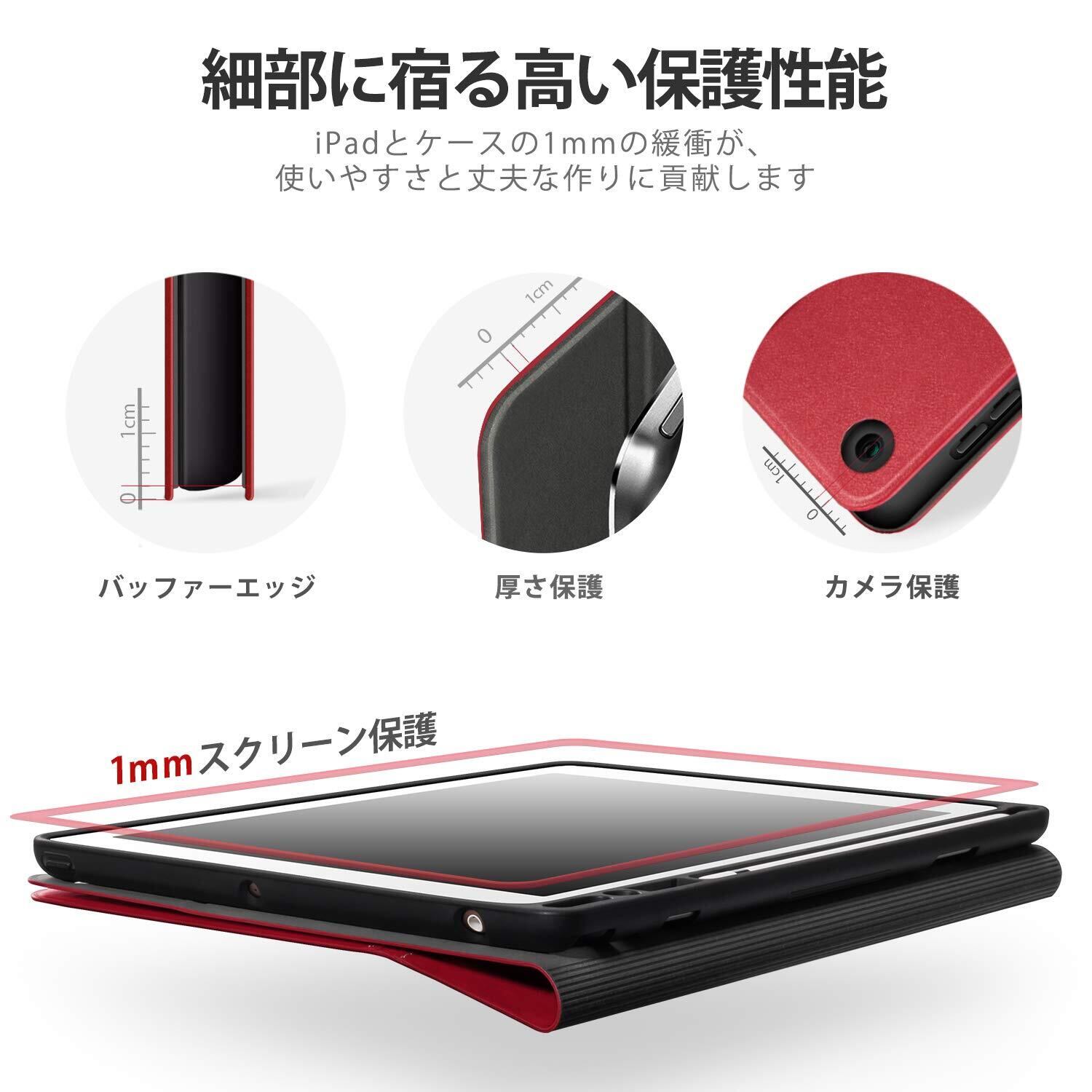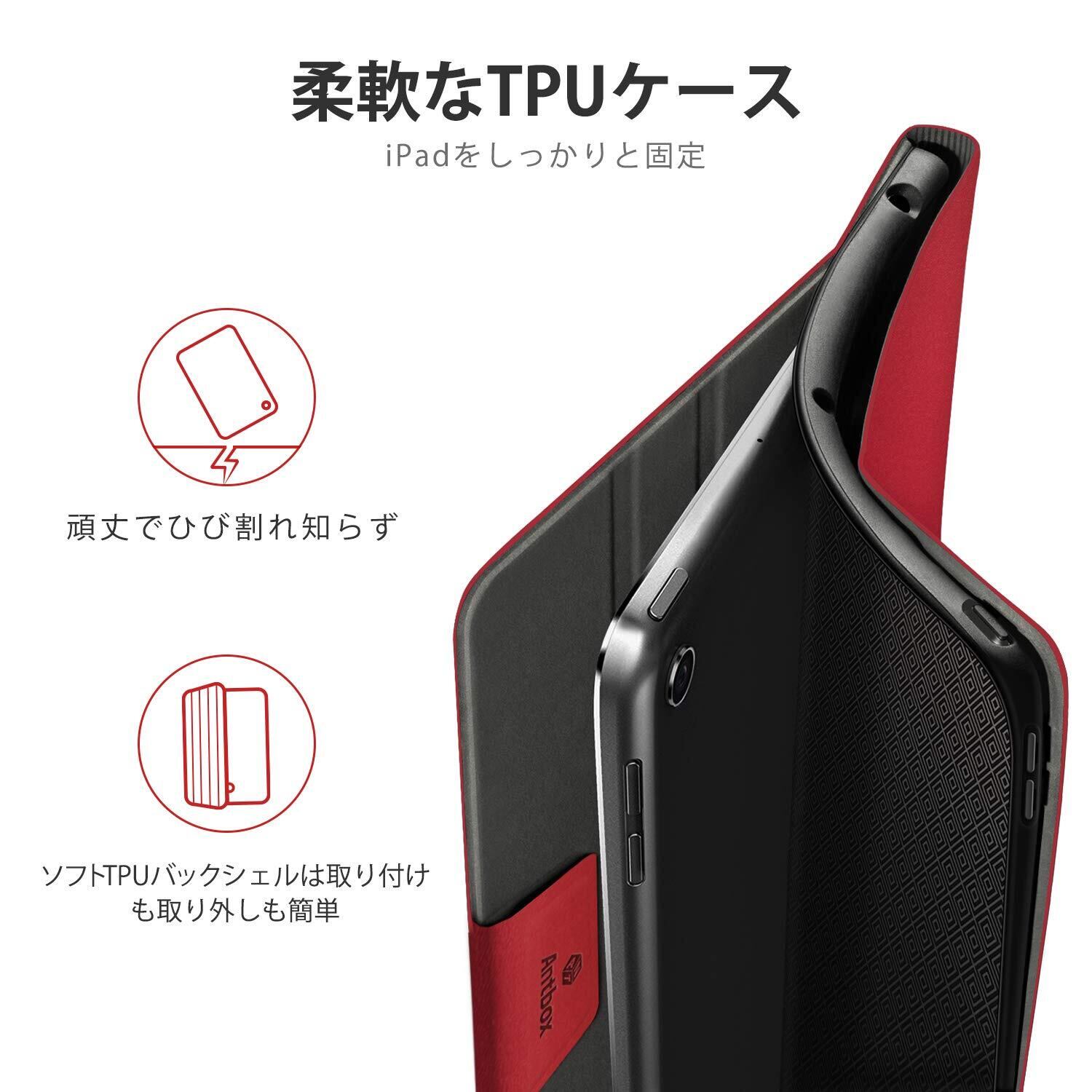 Antbox iPad 9世代 ケース 10.2インチ 第9/8/7世代 ケース 高級ソフトPUレザー製 ひび割れ防止 耐衝撃 アップルペンシル収納可 オートスリープ&スタンド機能付き 全面保護 iPad第7/8/9世代 カバー (レッド)