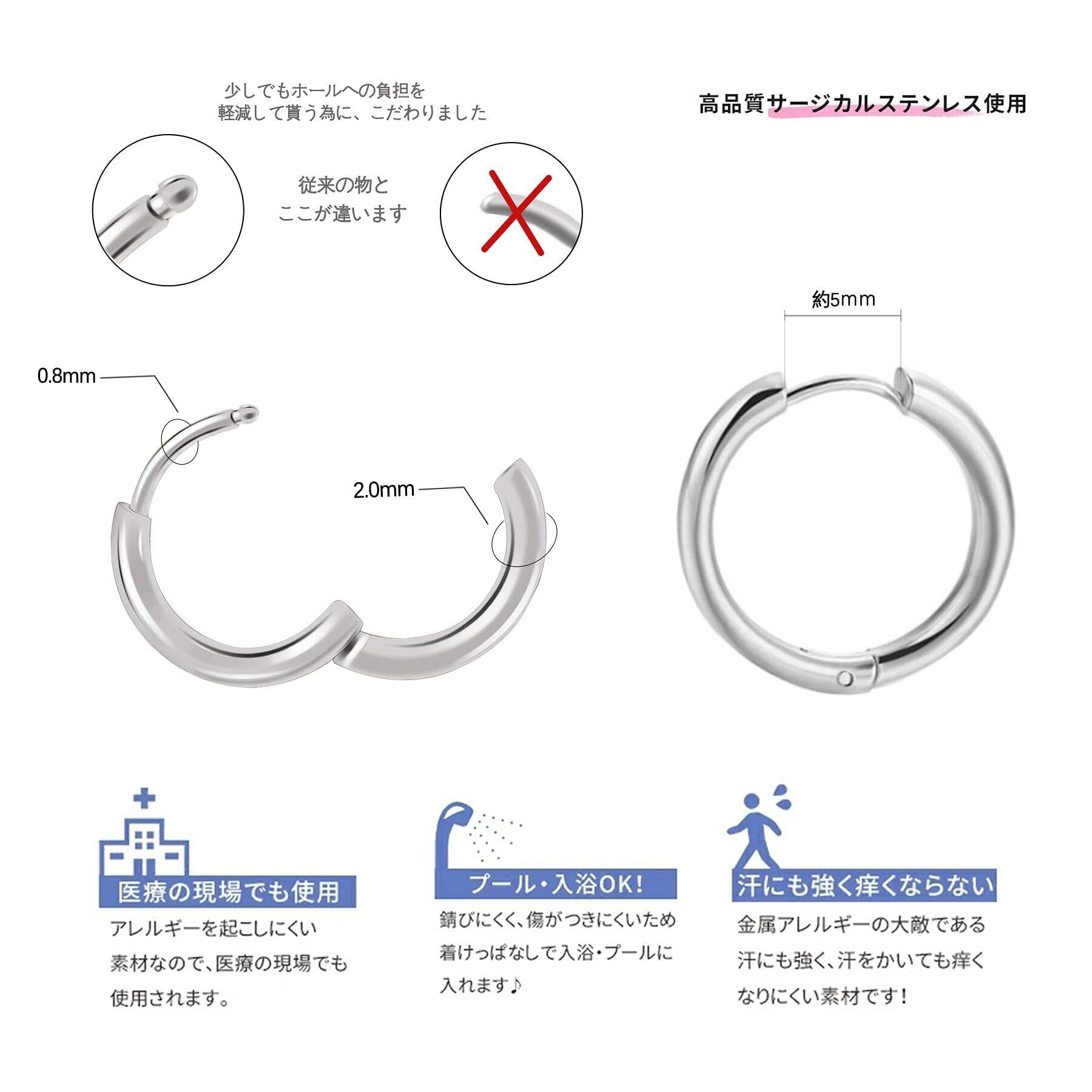 素材:サージカルステンレス*鉛を使用しておらず、ニッケルも使用しておりません、アレルギーが、おこりずらく肌にも適しております。高品質の電気メッキで、酸化がなりにくく安心してご利用なれます。フープピアスの素材はほとんどの敏感肌に優しいです。