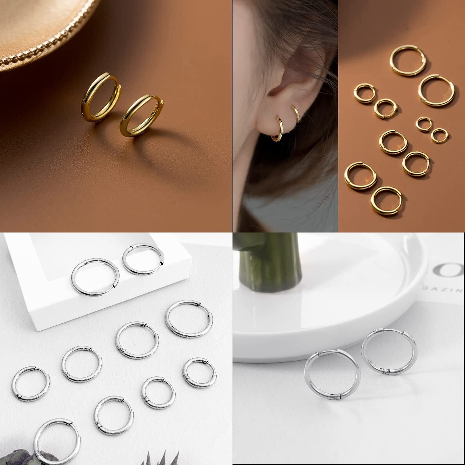 Senteria フープピアス リング メンズ レディース 両耳用 サージカルステンレス イヤリング セット 金属アレルギー対応 シンプル 人気 5ペア(サイズ10mm-18mm、幅2mm、 ゴールド、シルバーブラック)