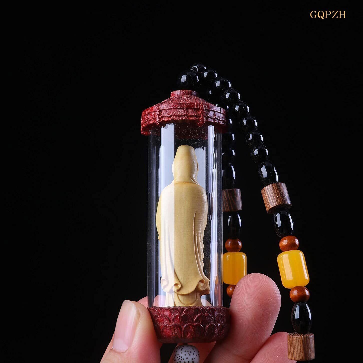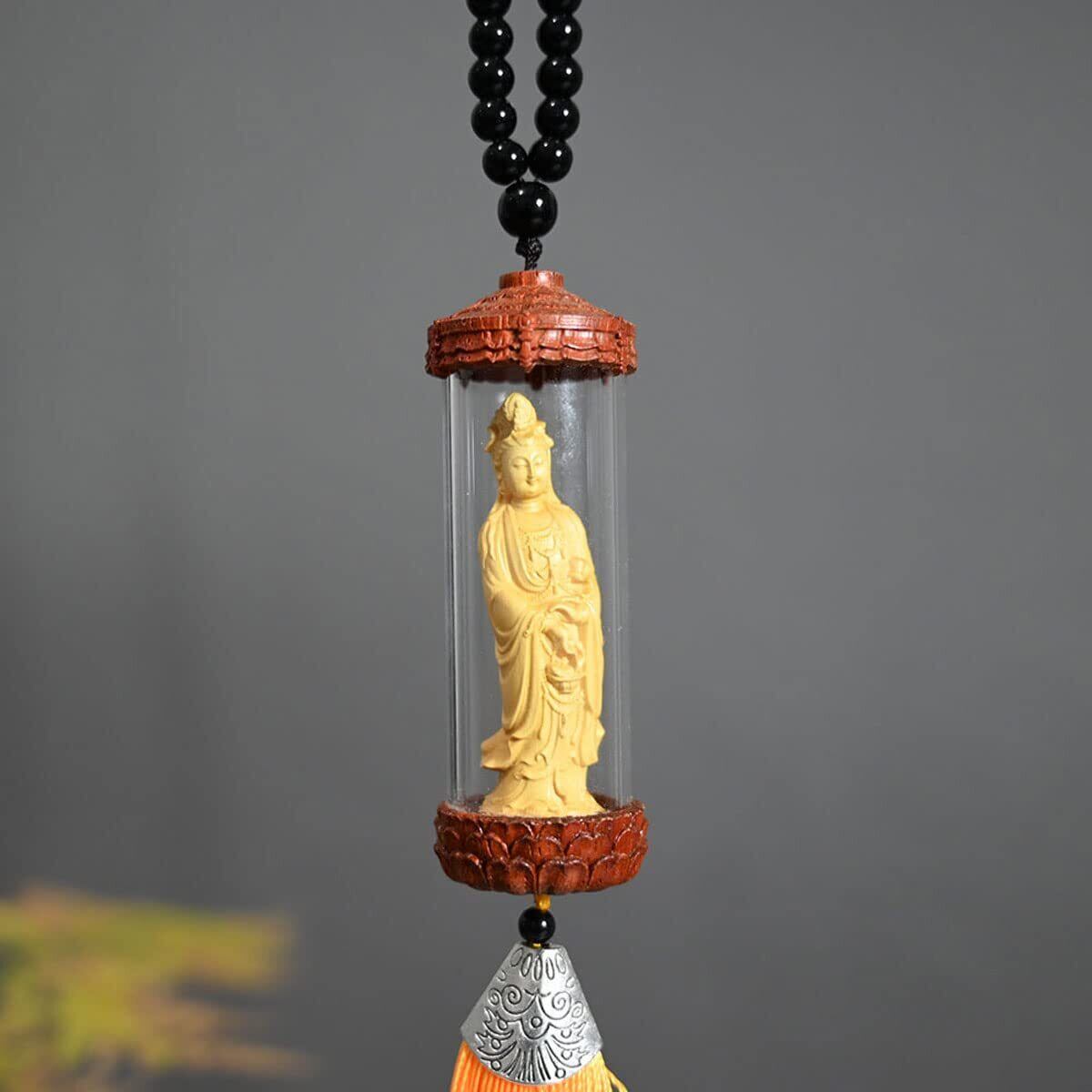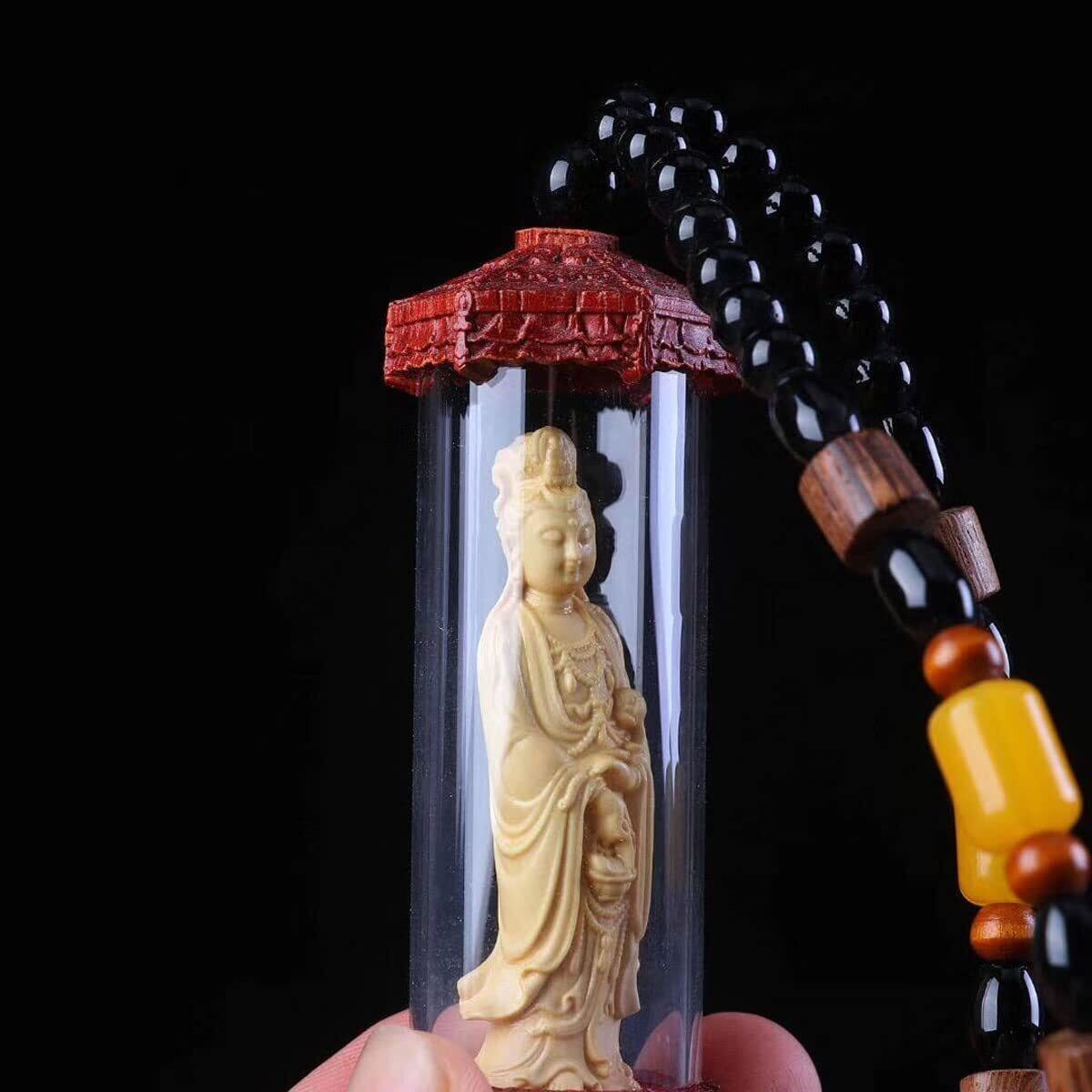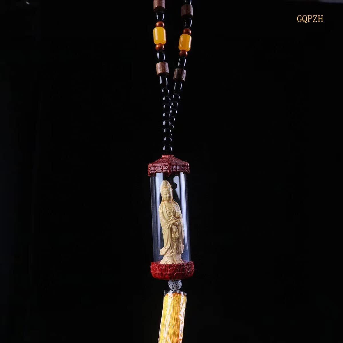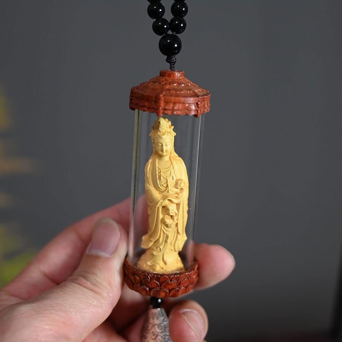 ミニチュア仏像 木彫観音 美術品 観世音菩薩仏像 観音像 仏像 小型 観音菩薩 ペンダント 木彫り観音様 ツゲ 柘植 木彫りの仏像 (C)