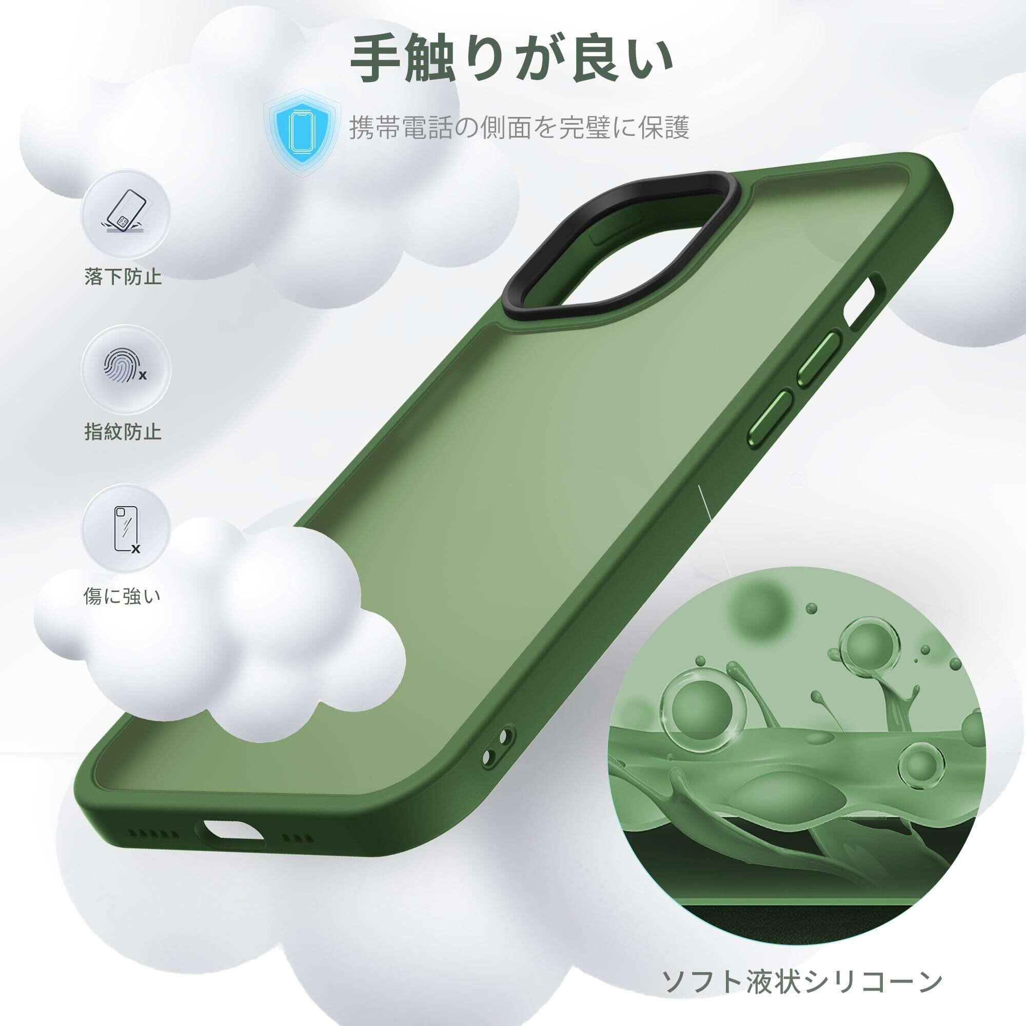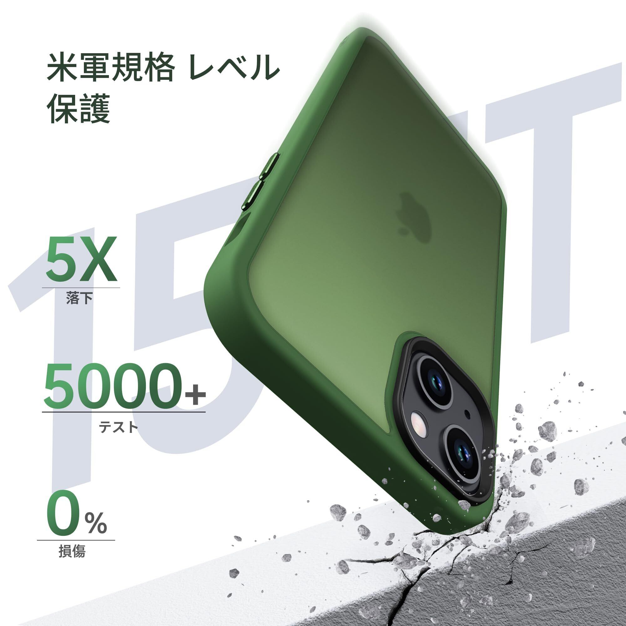 Anqrp iPhone 14 Plus 用 ケース 半透明 耐衝撃 滑り止め 米軍MIL規格 指紋防止 マットケース ストラップホール付き ワイヤレス充電対応 スマホケース アイフォン 14 Plus カバー 6.7インチ グリーン