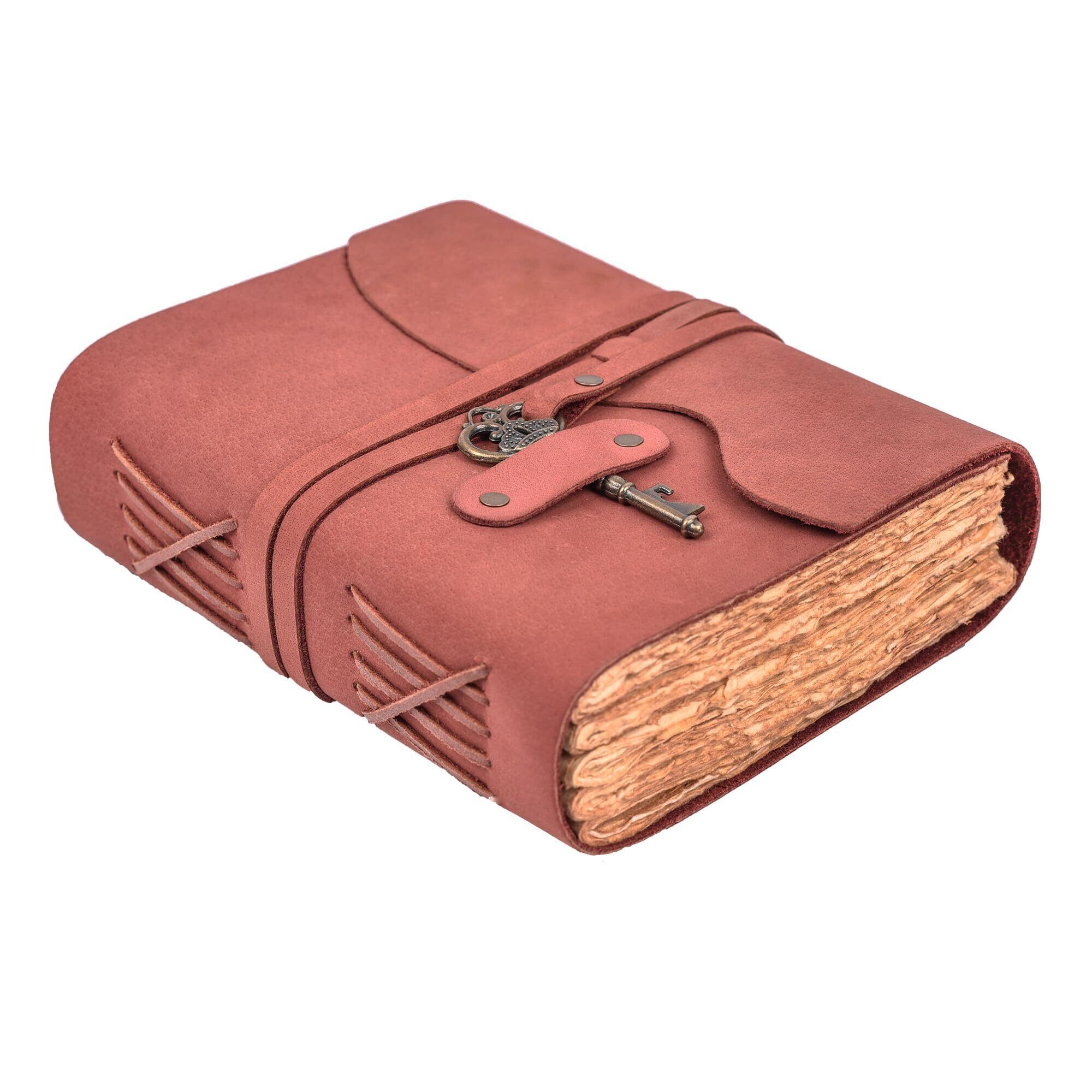 ヴィンテージレザージャーナル - ヴィンテージレザー綴じジャーナル レディース メンズ – ハンドメイド ヴィンテージデコール エッジペーパー – ヴィンテージキークロージャー – 影の本 – レザースケッチブック – 8インチx 6インチ フクシア