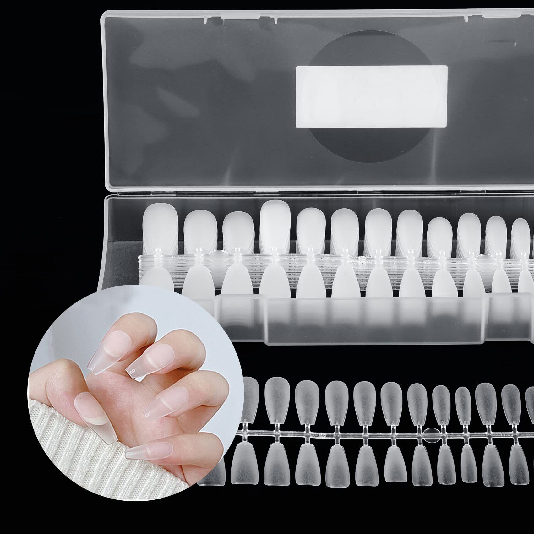 Annhua ネイルチップ 透明 270枚 超薄 艶消 長さだし ネイルチップセット バレリーナ ミディアム クリアチップセット つけ爪 ネイル長さだしチップ 自然なフィット感 練習用 業務用 ネイルアート ケース付き