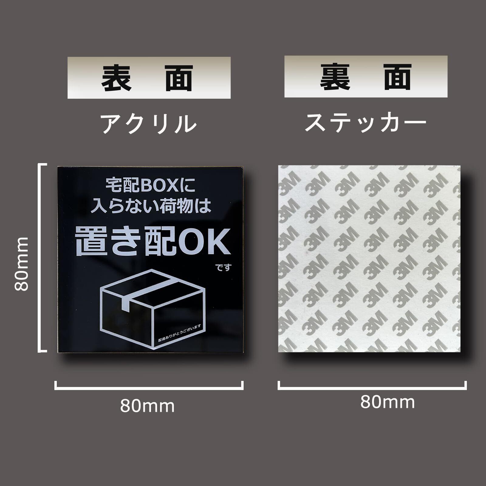 宅配ボックスに入らない荷物は置き配OK 宅配ボックス 宅配BOX プレート 両面テープ付き 置き配達 不在案内 再配達防止 2㎜アクリル製 おしゃれ ステッカー (ブラックー80×80㎜(1枚))…