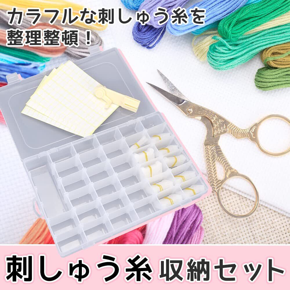刺繍用品収納セット 収納ケース 刺繍糸 糸巻板 ステッカー 巻き取りホルダー 収納 クリア 大容量