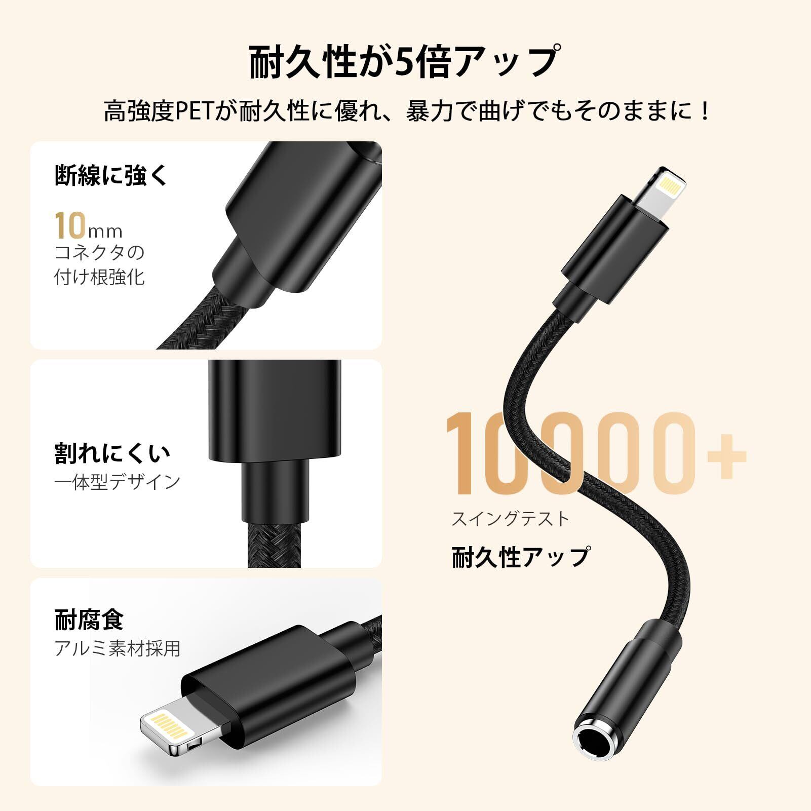 iPhone 変換アダプタ Lightning - 3.5mm イヤホン 変換ケーブル MFi認証 イヤホン・ヘッドホンアダプター ライトニング 3.5mm 変換 音量調節/音楽対応iPhone14/13/12/11/iPadなど対応 0.18m