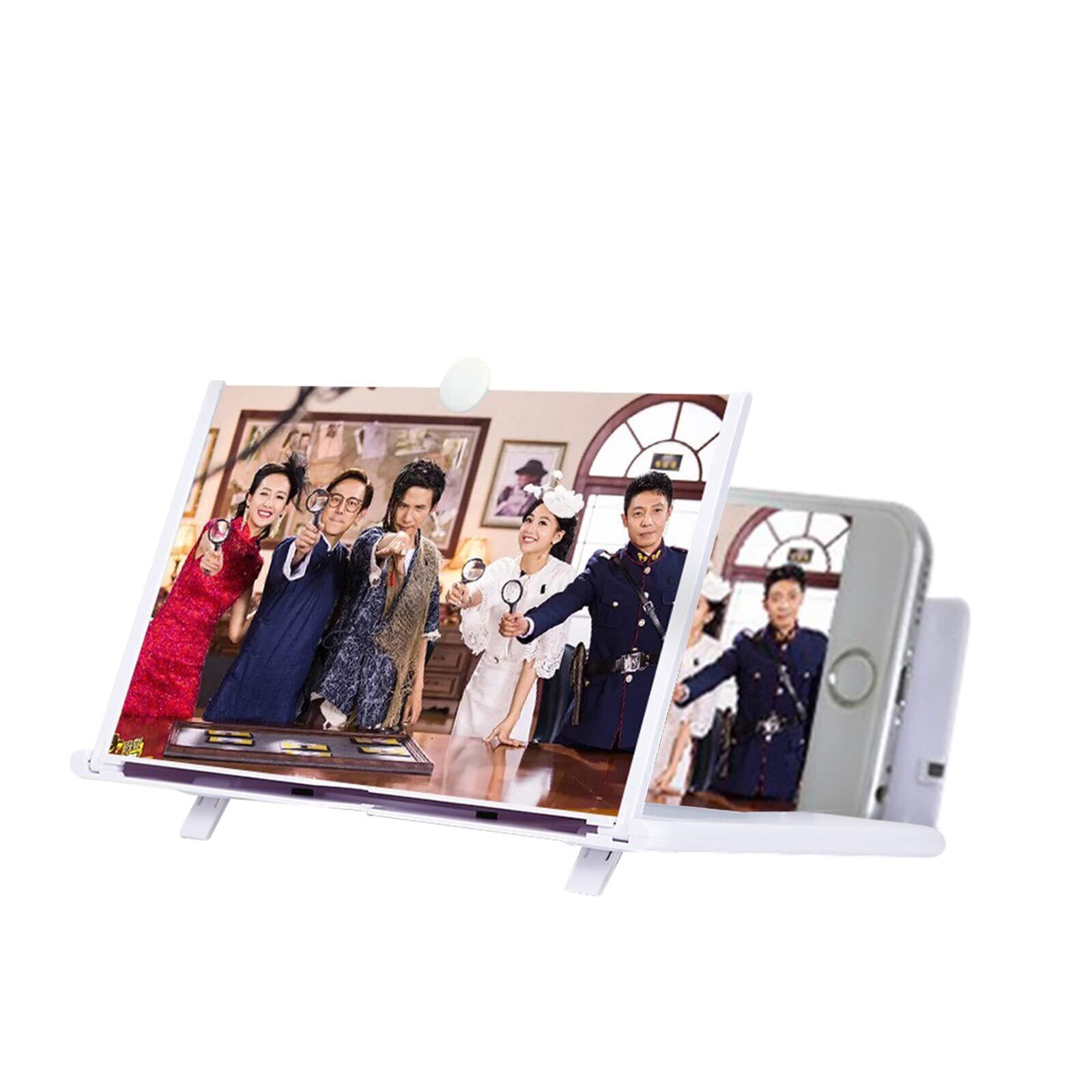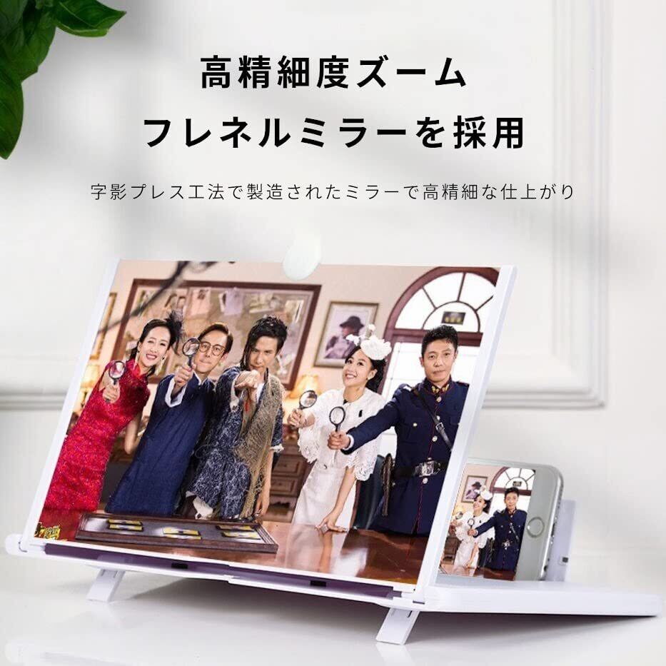 スクリーンアンプ 16インチ スマホ 拡大鏡 HD 3D スタンド折り畳み式 収納便利 機能調節可能 目の保護 疲労軽減 スマホ画面拡大 スタンド 画面を5倍拡大 スマートフォン& タブレット ホワイト (16インチ)