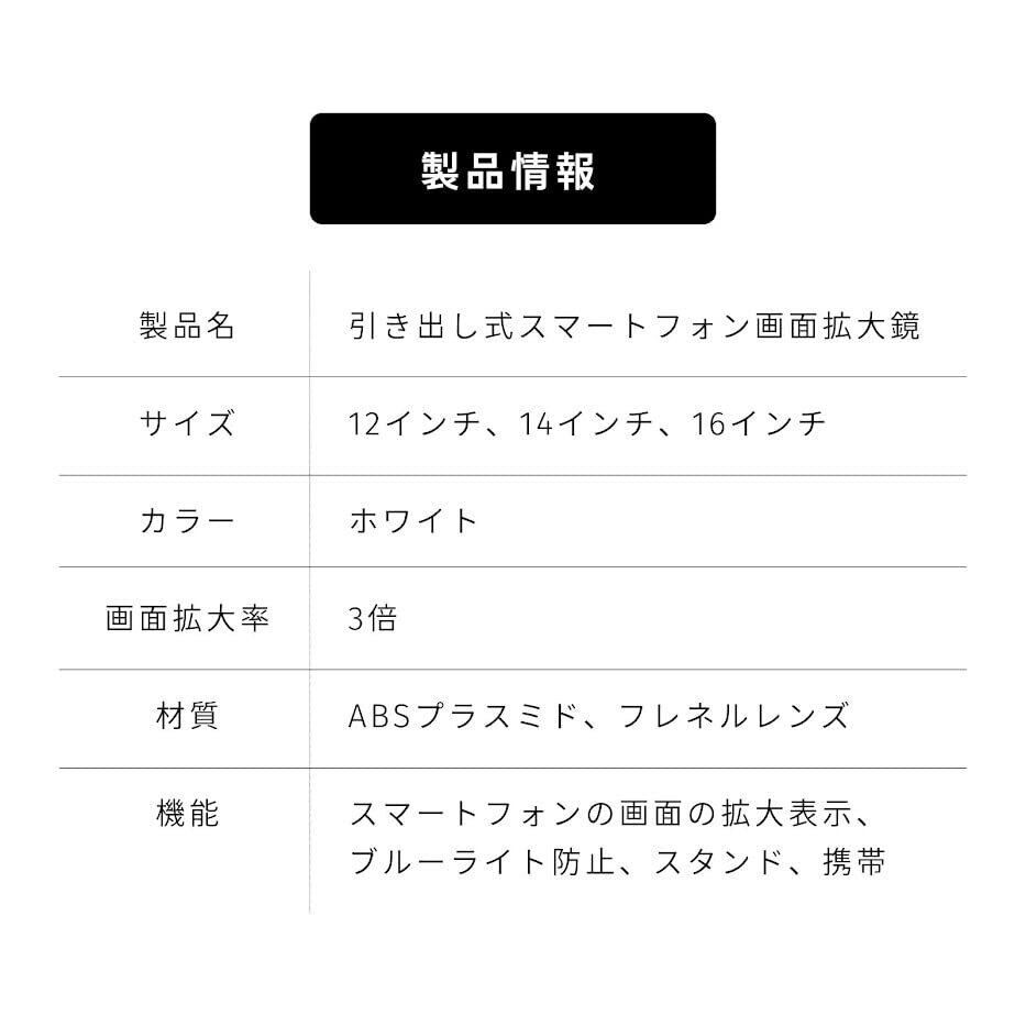 【12~16インチが選べるスマホ拡大鏡】 スマホの画面を拡大することができ視覚疲労の緩和・軽減に努め目の保護が可能です。また画面がよく見えない問題を解決します。