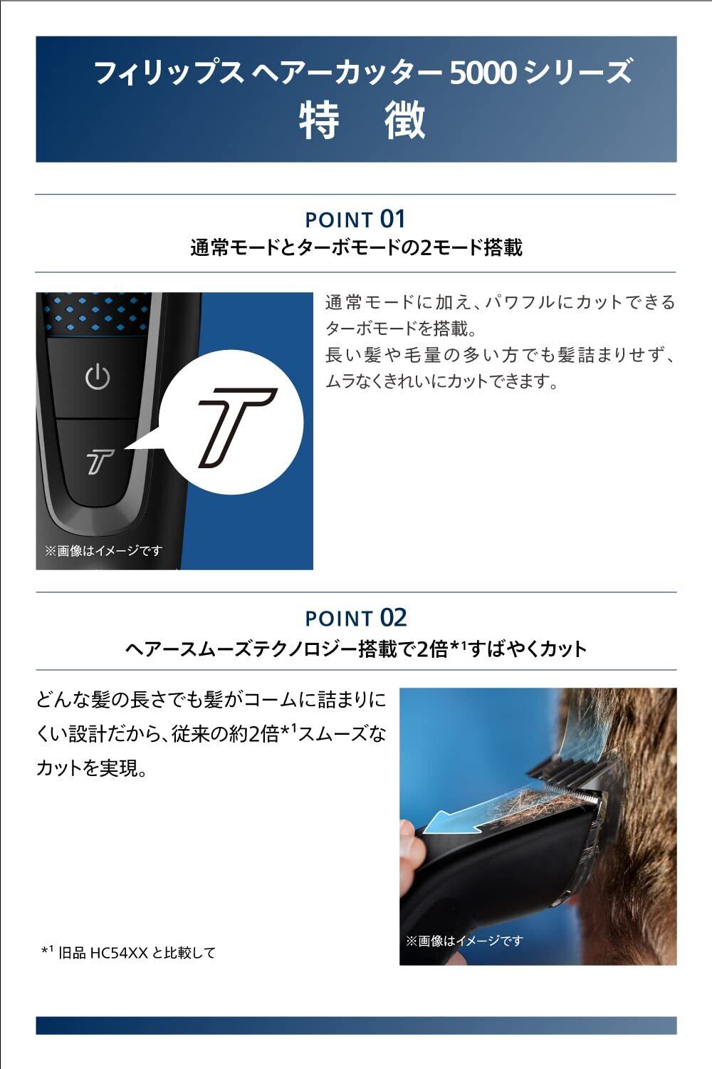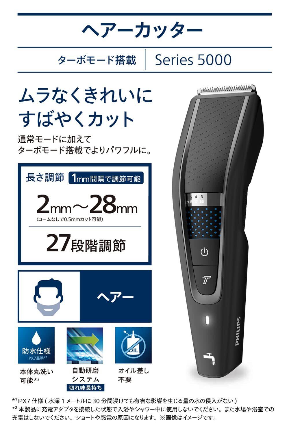 フィリップス ヘアーカッター5000シリーズ (電動バリカン 充電/交流式 ・ターボモード搭載・27段階調整 3-28㎜) HC5632/17 ブラック