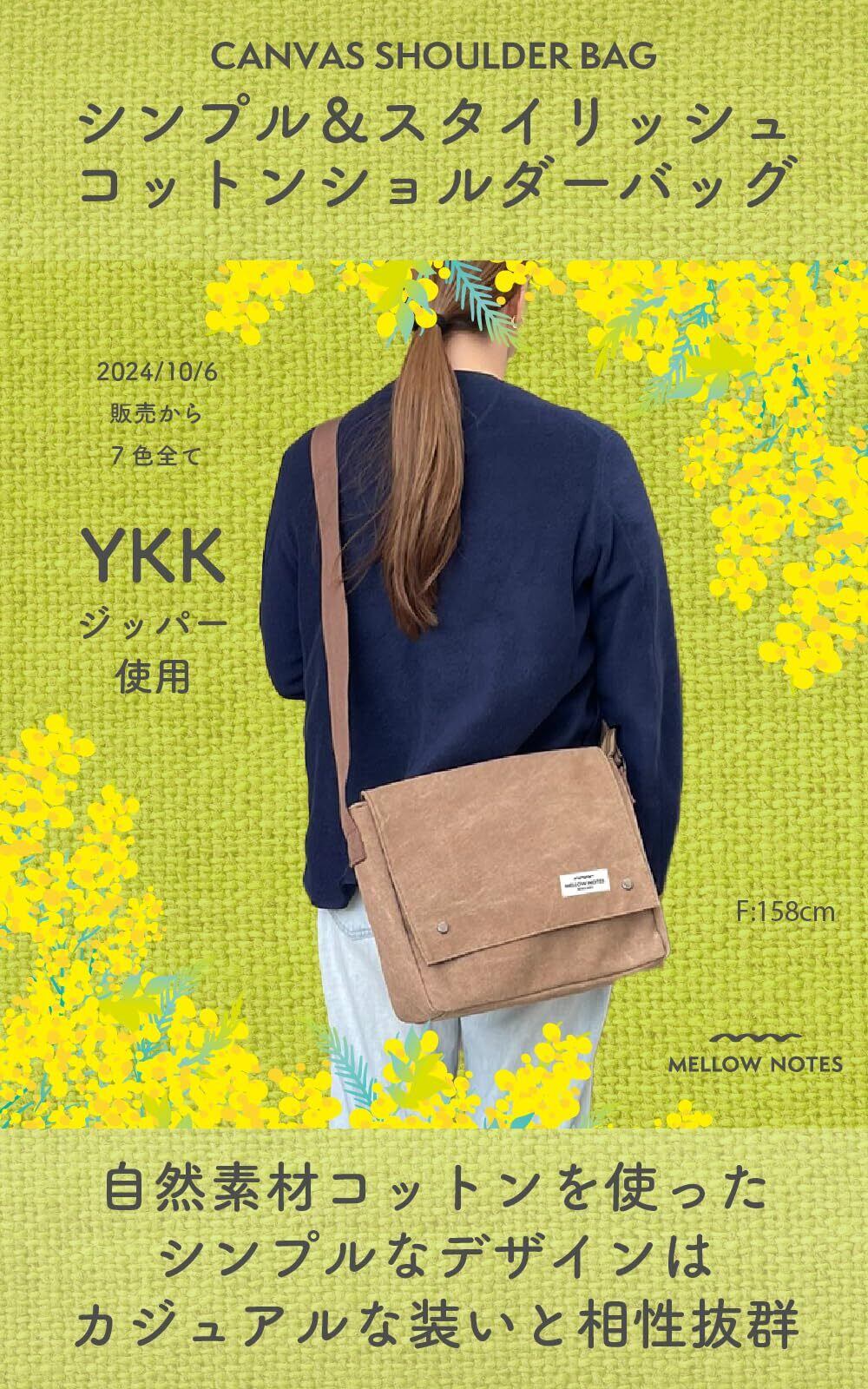 [MELLOW NOTES] [メローノーツ] ショルダーバッグ メンズ ショルダー バッグ 肩掛け メッセンジャーバッグ YKK 斜めがけ 帆布 キャンバス a4 シンプル カジュアル 人気