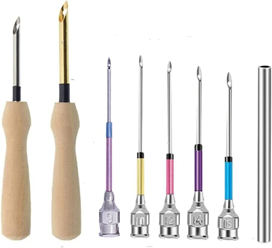 【パッケージ内容】木製ハンドル刺繡パンチ針*2(0.5mm、0.35mm)、フェルトパンチ針*5(9# 10# 12# 14# 16#)、パンチ針ハンドル*1