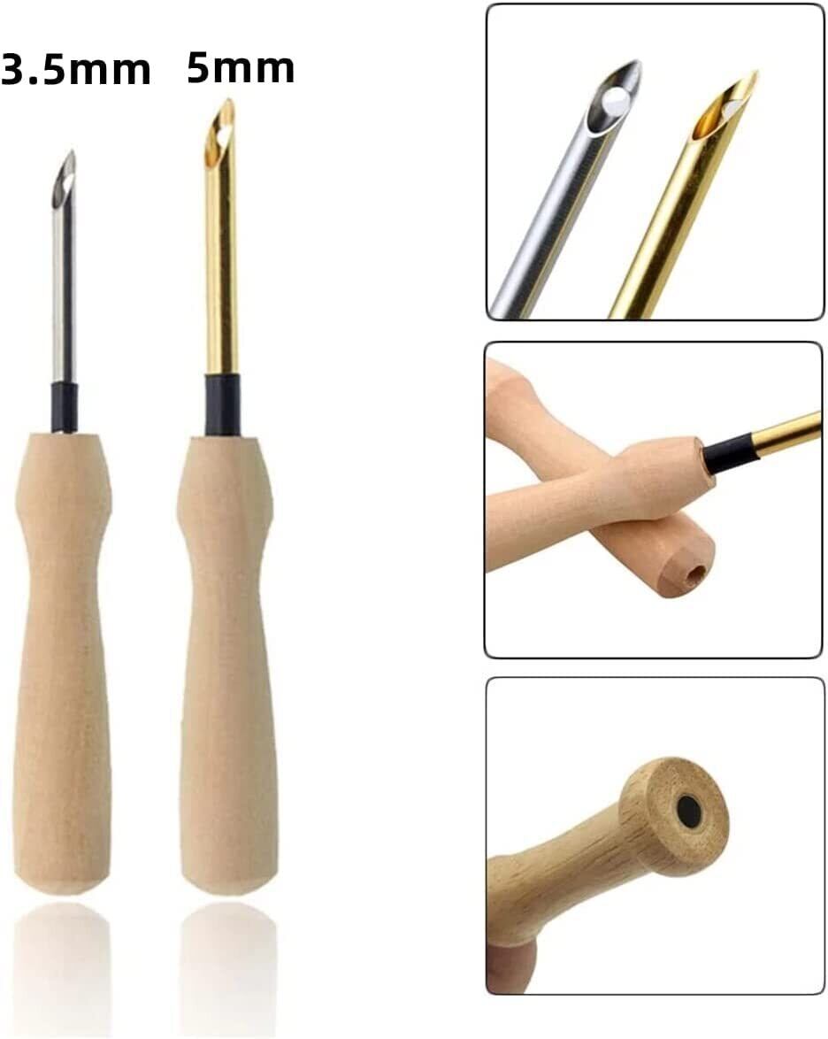 【使いやすく】木製のハンドルは、持ちやすく、快適な輪郭の形状をしています。パンチ針を通してペンの上部まで糸を作り、次に針の穴を通して糸を取ります。シンプルで使いやすいです。