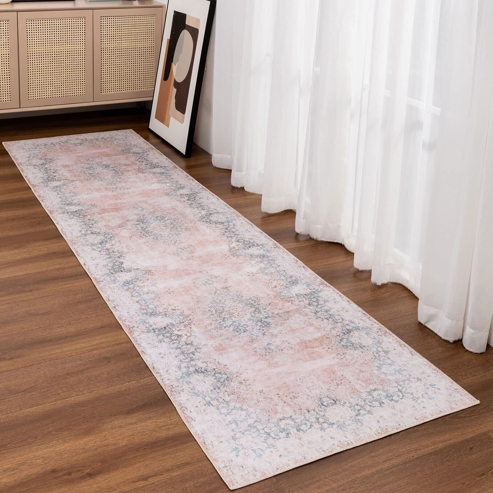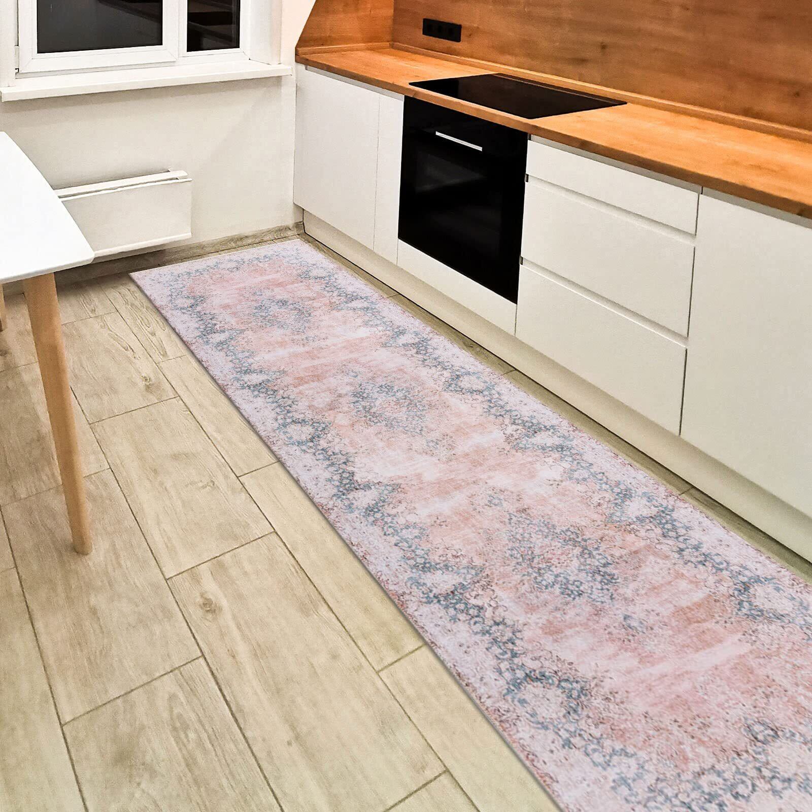 DECOMALL キッチンマット 240 洗える 廊下 カーペット 台所 マットおしゃれ 60x240CM ペルシャ絨毯 ラグ オールシーズン 防臭 防ダニ オ レンジ 床暖房対応
