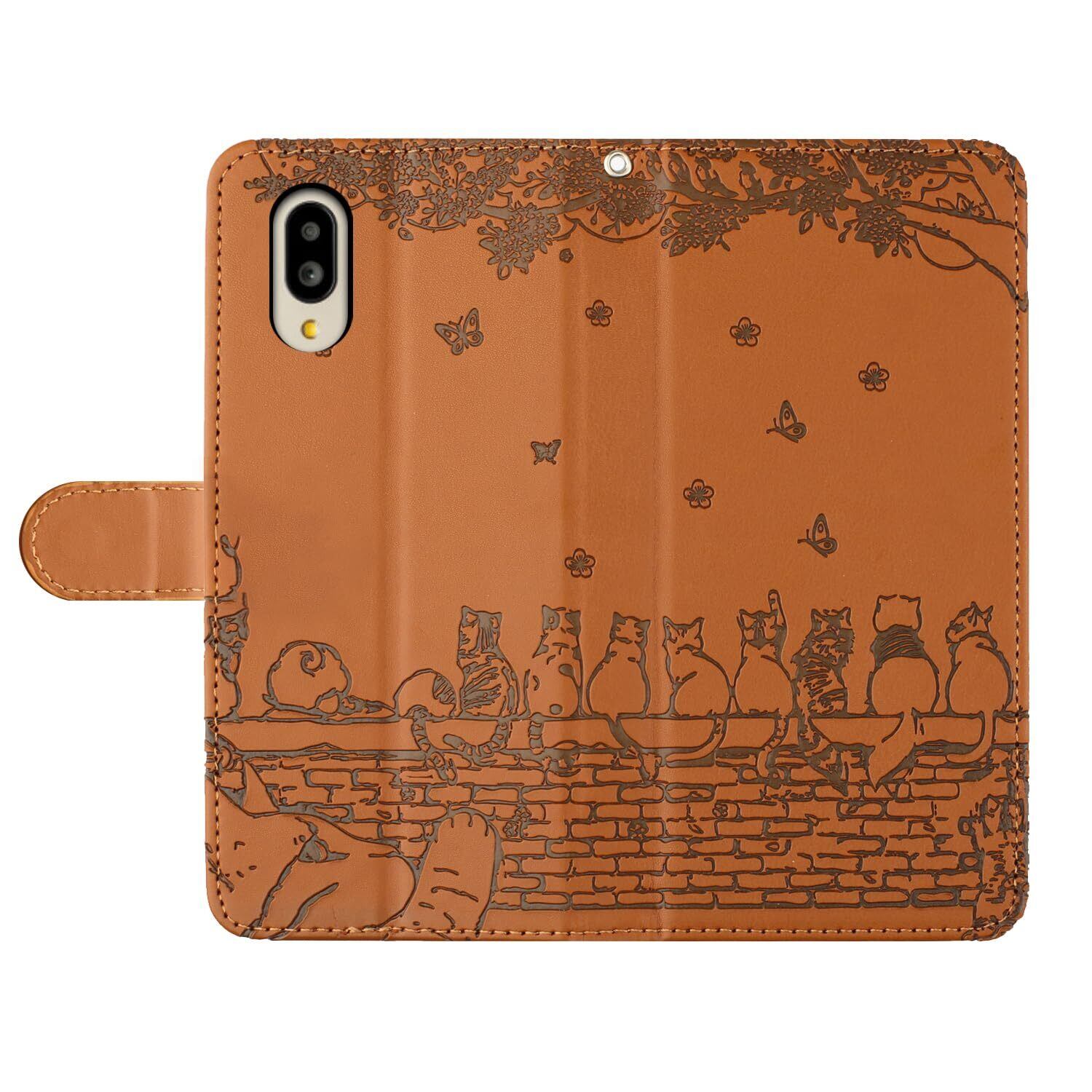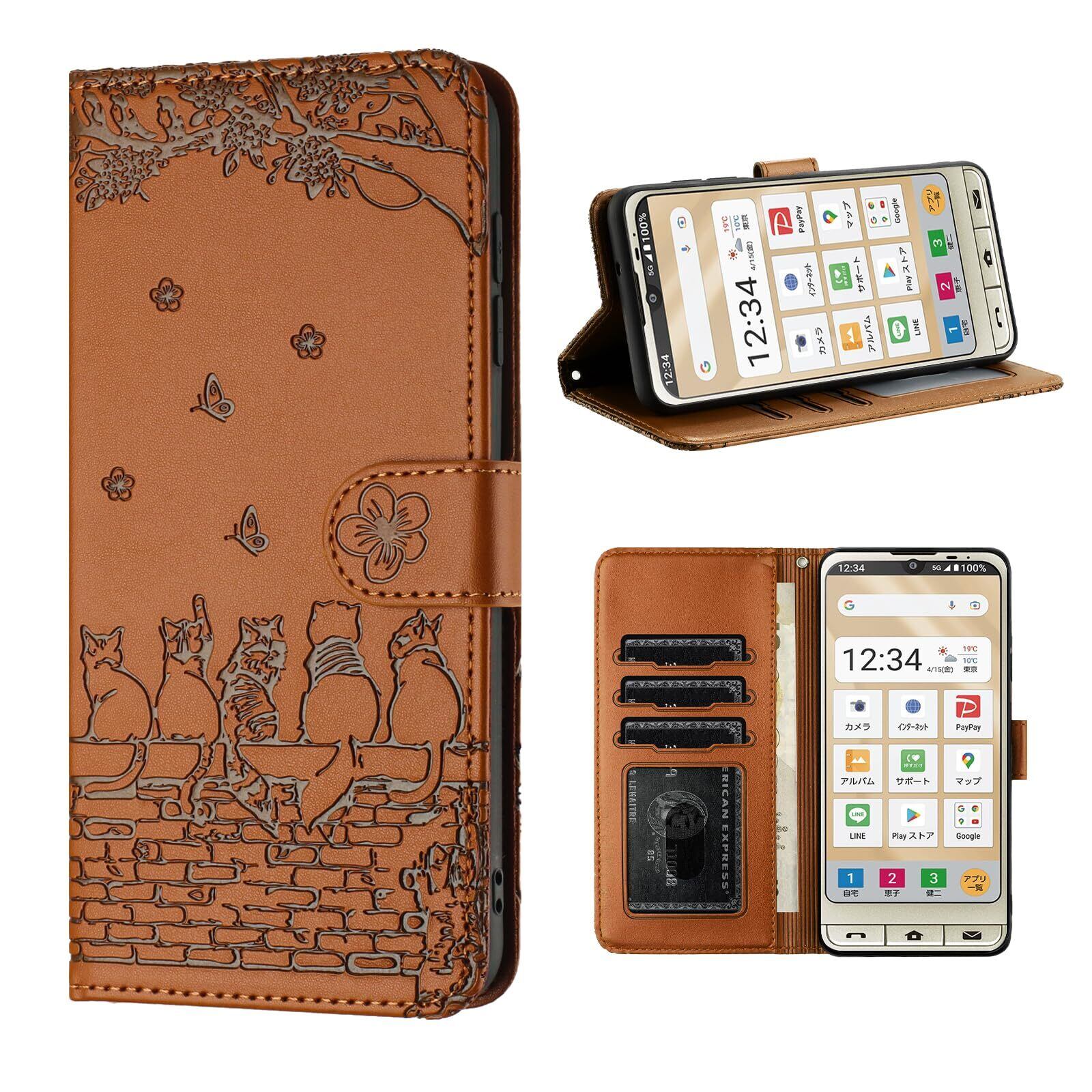 シンプルスマホ7/シンプルスマホ6 ケース 手帳型 simple sumaho6 A201SH/BASIO active SHG09/Basio active2 SHG12 ケース 手帳型 おしゃれ カバー Simple Sumaho6 手帳型 ケース かわいい猫と美しい桜柄 シンプルスマホ6 A201SH ケース 手帳型 上質PUレザー カード収納 マグネット式 スタンド機能 (ダークブラウン)
