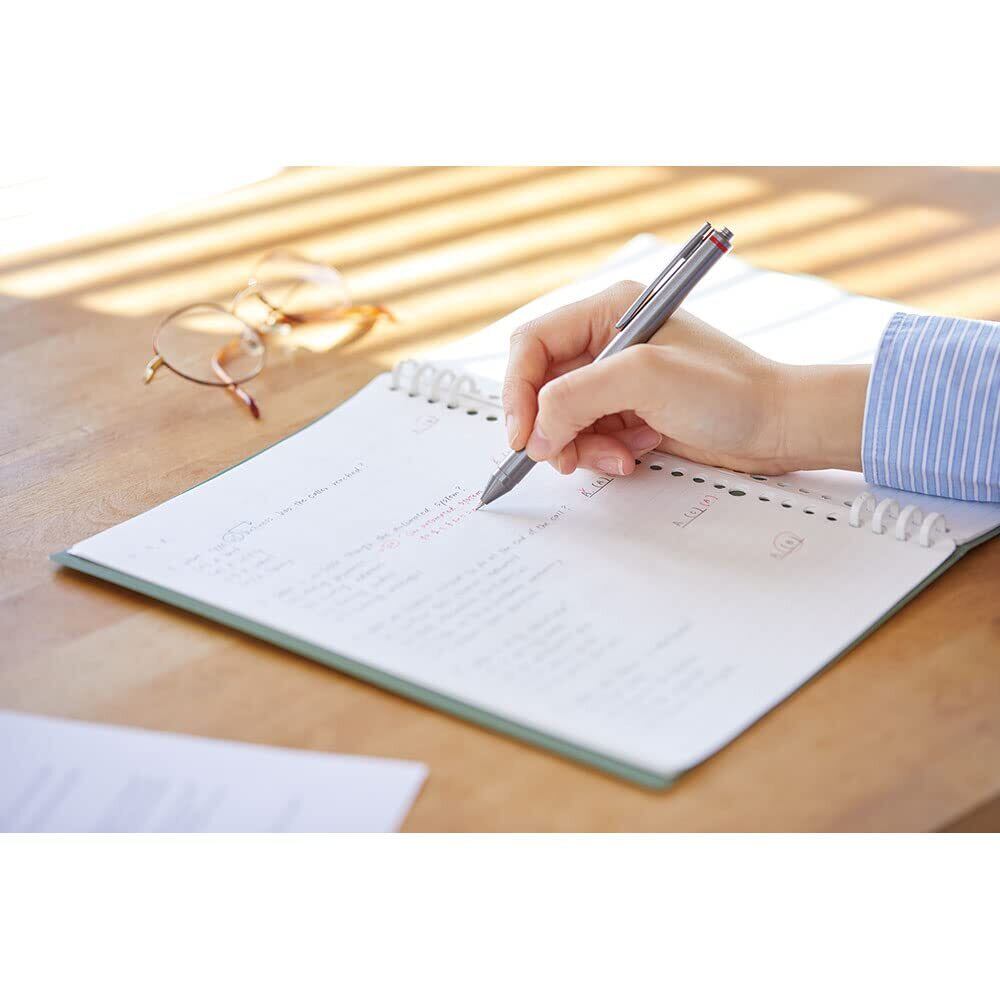 上下に分かれたコンパクトで、書くときに手がリングに当たらずスムーズに書き込むことができます。