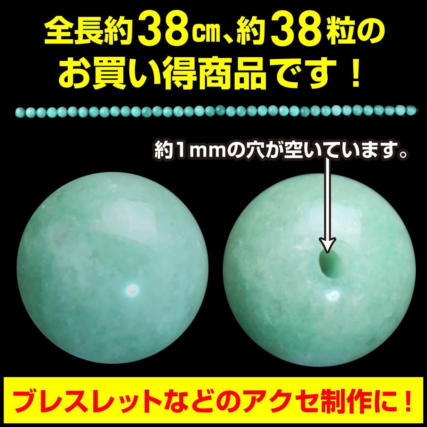 【天然石】翡翠 ヒスイ ブレスレット用 ビーズ 一連 10mm【約38粒入り】パワーストーン ジェイド 幸運 きらきらぷんぷん丸 NS-003