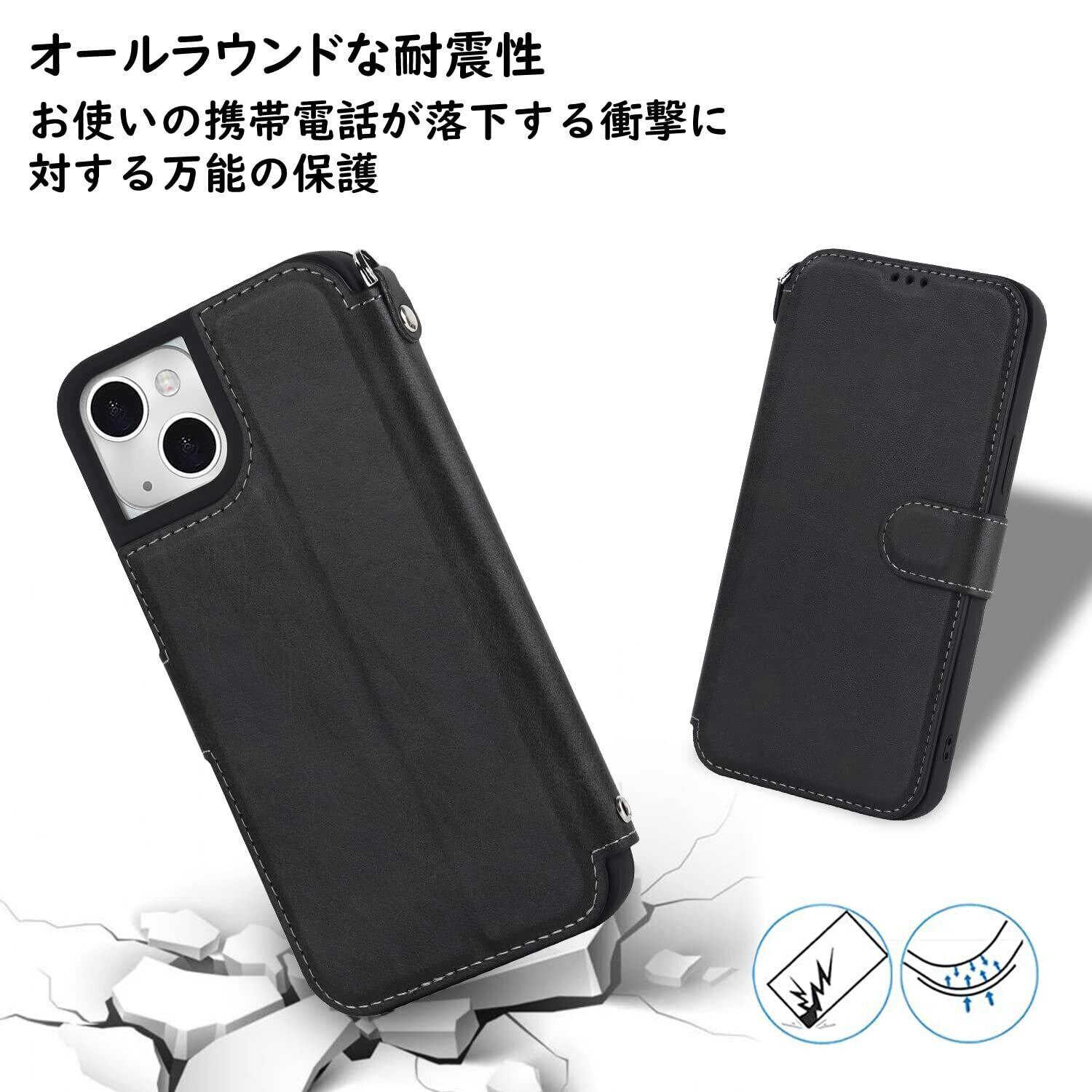 Havaya iPhone13ケース iPhone14ケース iphone 14 ケース 米軍MIL規格 軽薄 手帳型 ストラップ 耐衝撃 レンズ保護(アイホン14/いphone14/アイフォン14/あいふぉん14 通用 6.1インチ対応)-ブラック