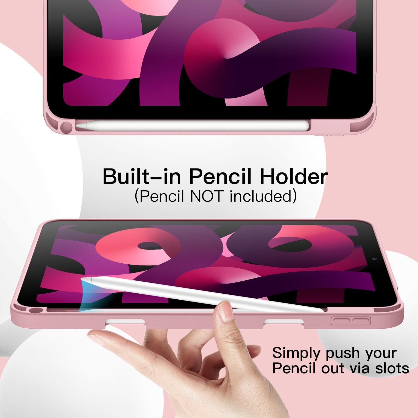 JEDirect iPad Air 11 インチ M3/M2 (2025/2024), iPad Air5/4 2022/2020 10.9インチ専用 保護ケース Pencilホルダー付き ソフトTPUバック スリム保護カバー オートウェイクアップ/スリープ機能付き (サンディピンク)
