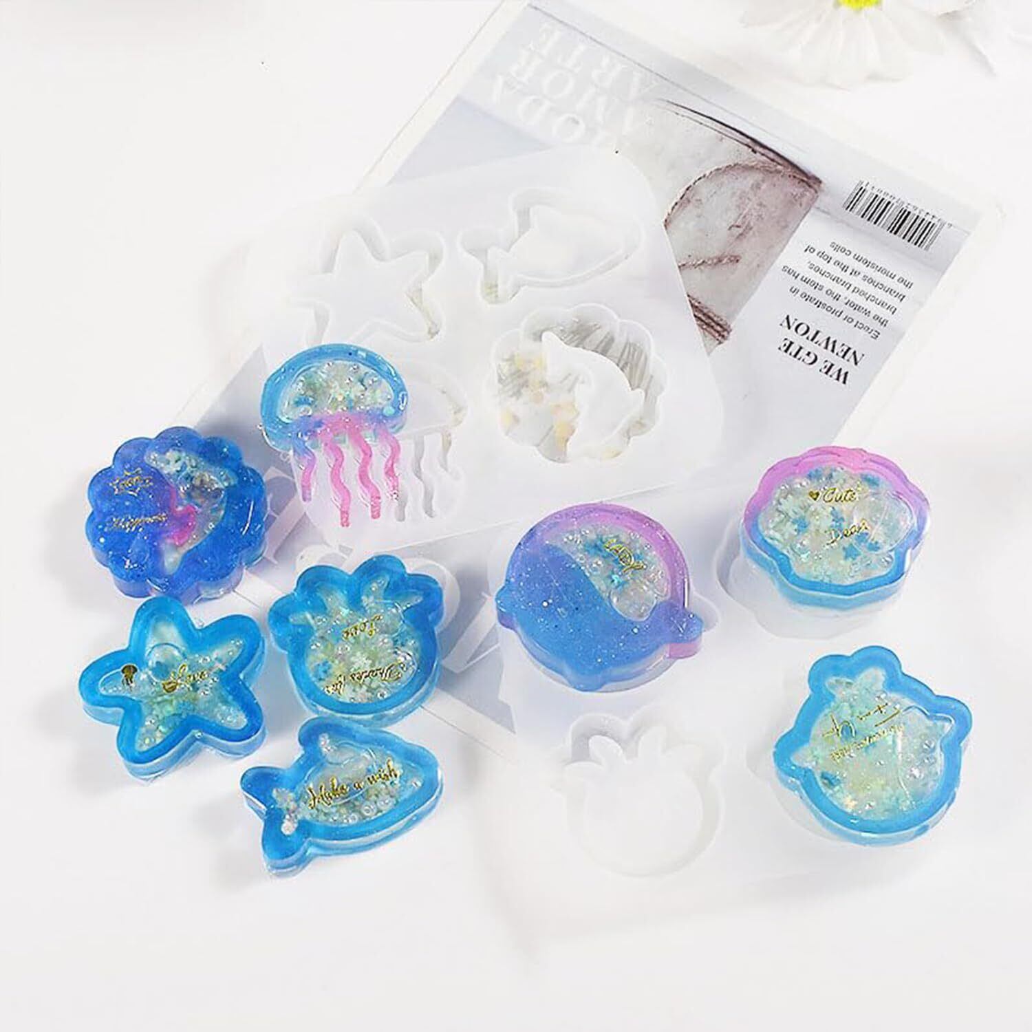 レジン型 シリコンモールド8 種類流砂型シェイカーモールド UVレジン シャカシャカ クラゲ 貝殻 星 シリコン型 モールド DIY 手作りキーホルダー イヤリング ペンダント アクセサリー モールド