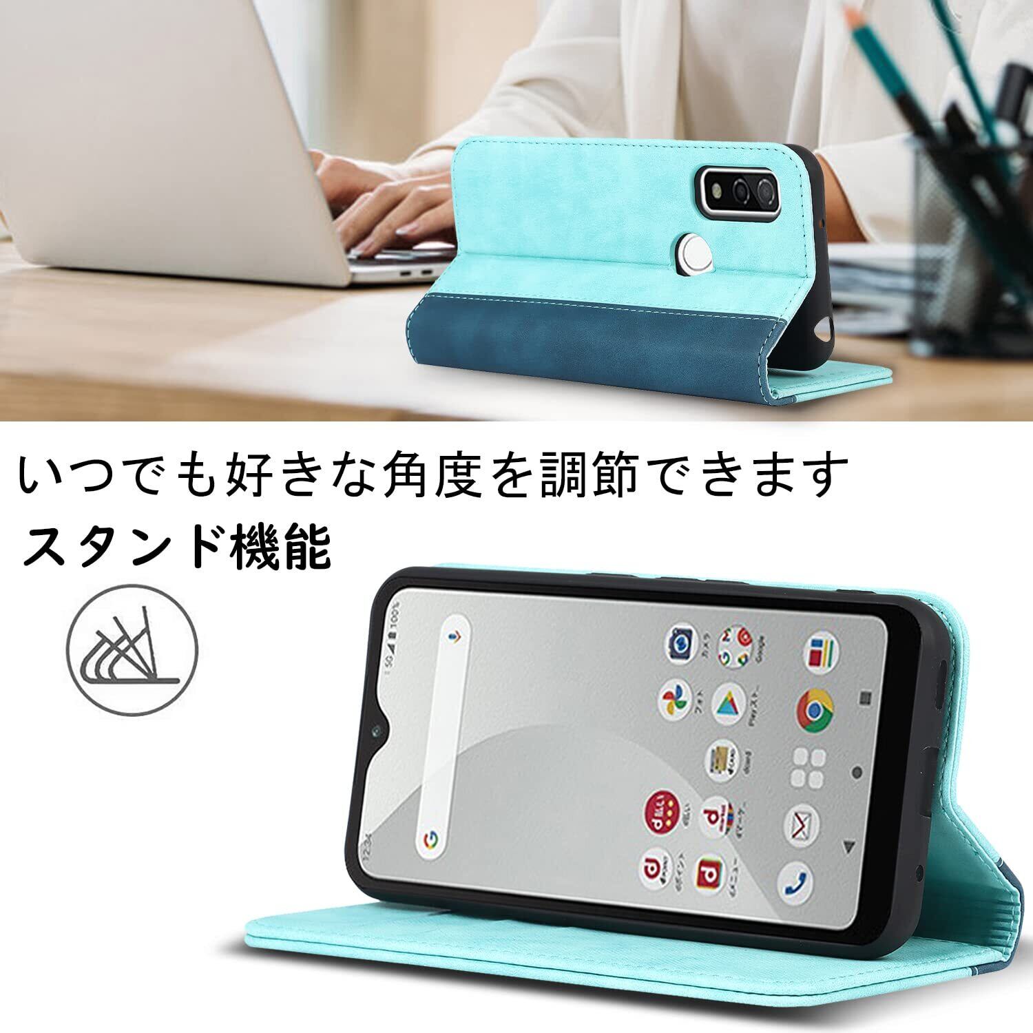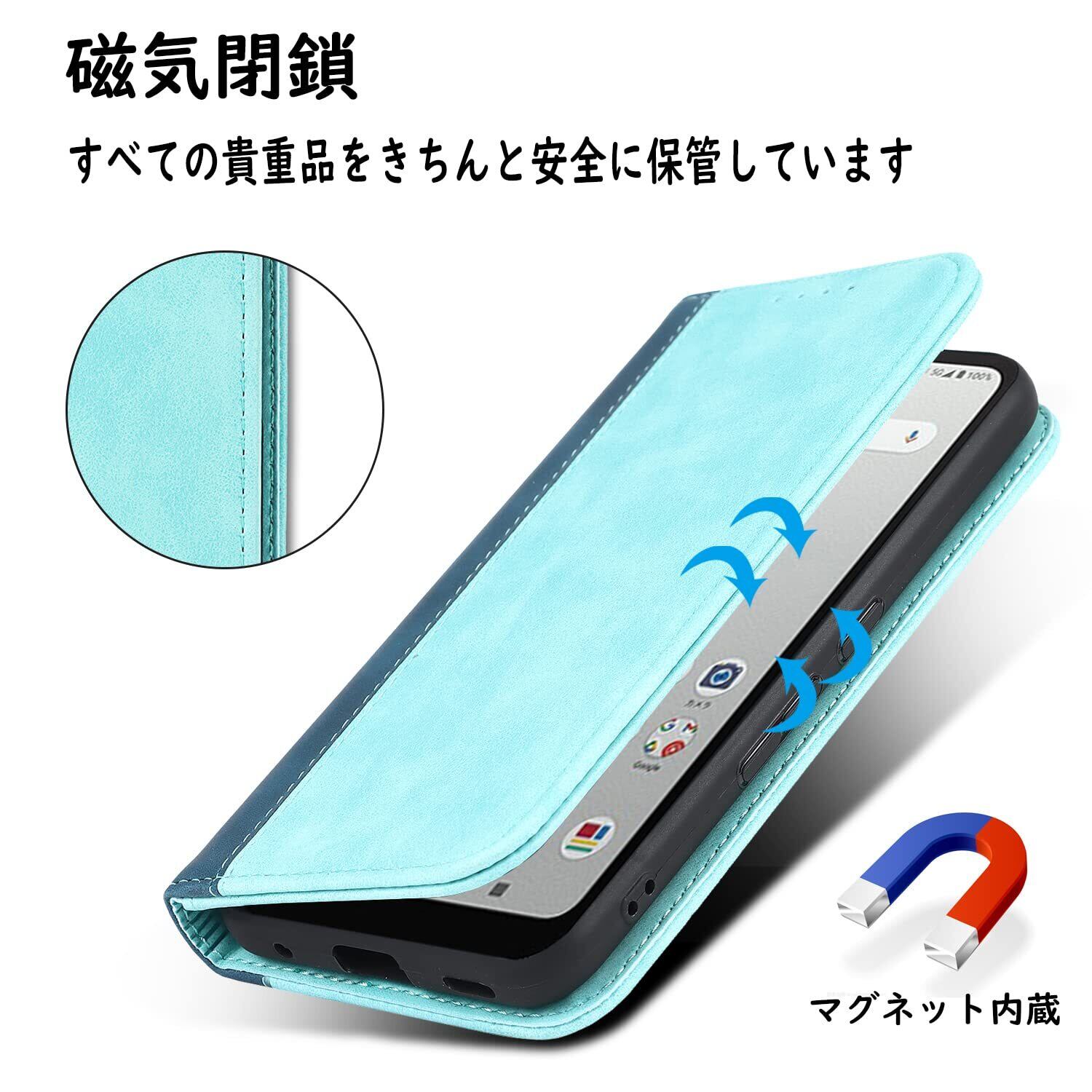 【収納機能】Arrows We F-51B FCG01 A101FCケース内側には三つのカード入れとフリーポケットがつき、カード類や紙幣、名刺などが収納できます。カードスロットに2枚のカードを入れると、内蔵マグネットの機能を最大限に発揮し、カードが消磁されるのを防ぐことができます。横置きスタンド機能が付き、横向いて斜めに立てて、自由に角度を調整して、お好みの角度で動画鑑賞や読書などを楽しめます。長時間での新幹線、飛行機の中での暇つぶしに最適です。