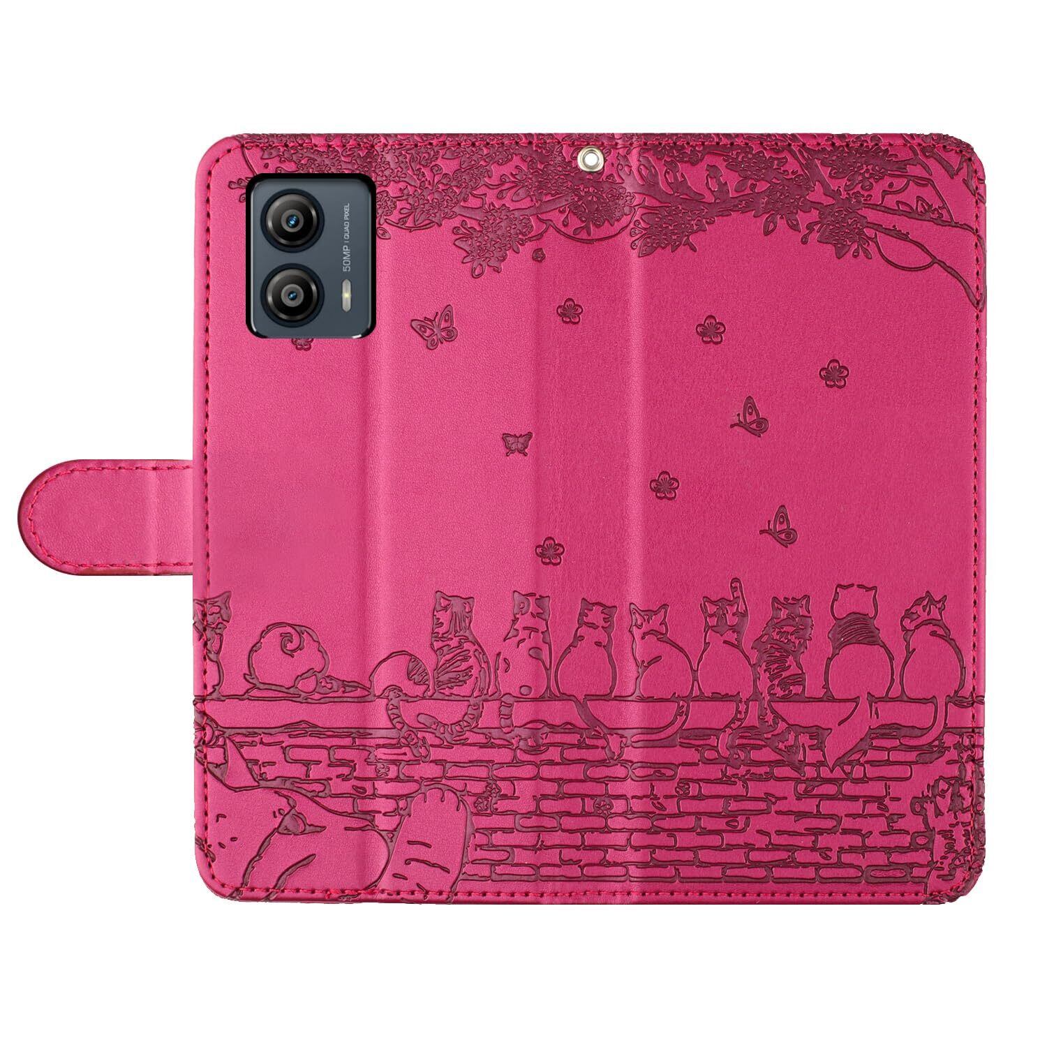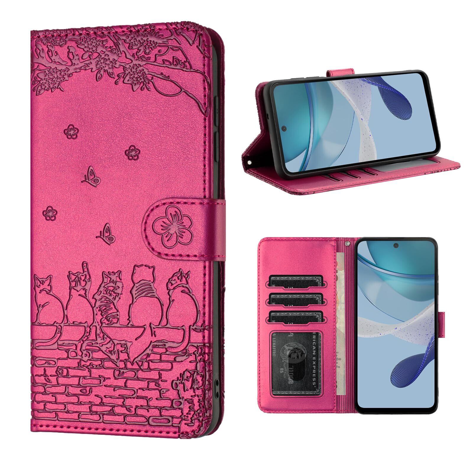 Motorola moto g53j 5G / moto g53y 5G ケース 手帳型 スマホケース カバー 人気 モトローラ Moto用 g53j g53Y ケース 手帳型 カバー スマホケース おしゃれ 上質PUレザー 本革 モトg53J モトg53Y 手帳型 かわいい猫と美しい桜柄 全面保護 カード収納 マグネット式 スタンド機能 耐衝撃 薄型 軽量【6.5インチ】ローズレッド