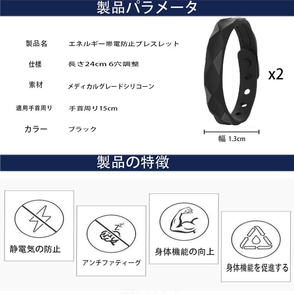 静電気除去 ブレスレット 静電気除去グッズ 2枚セット 静電気対策 もう痛くない 秋 冬 乾燥 防水 シリコン スポーツ カジュアル サイズ調整可能 15cm〜23cmの手首に適応 メンズ レディース シリコン 黒
