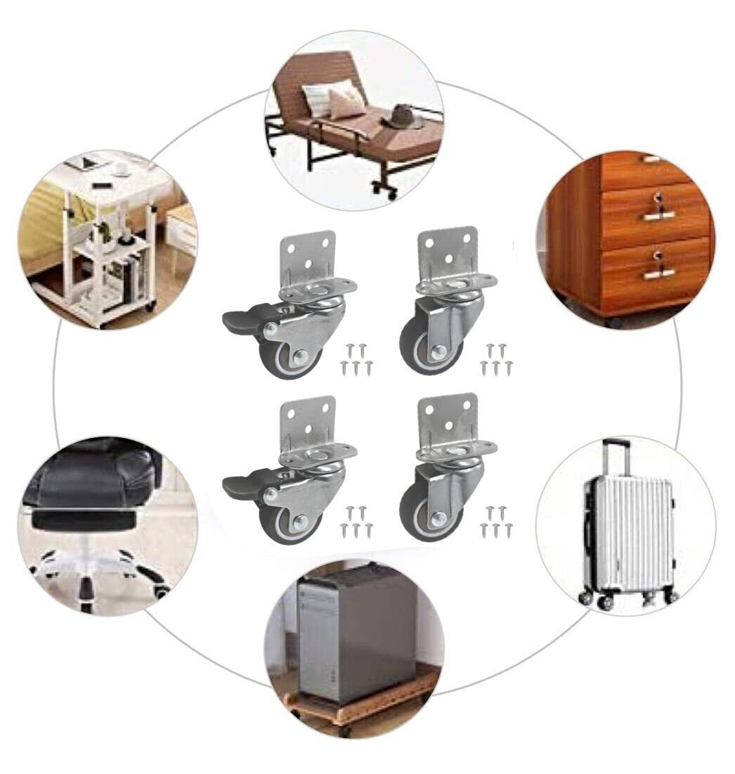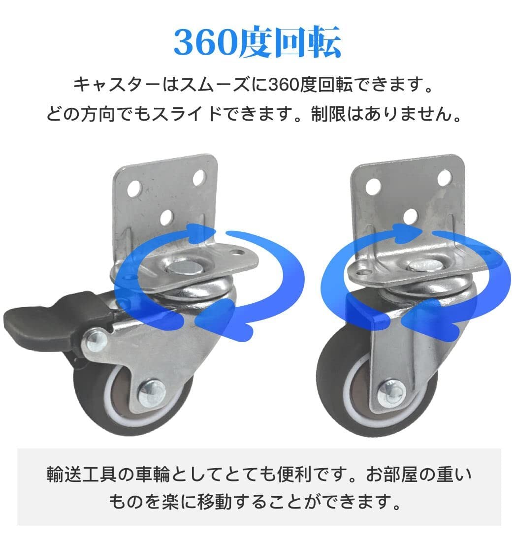 【幅広く適用】オフィスチェア、キャスターは、コーヒーテーブル、本棚、植物棚、シューズキャビネット、ショッピングカート、おもちゃ箱、ベッド台、作業台などに広く使用されています。多数の小規模または大規模なプロジェクトに使用できます。