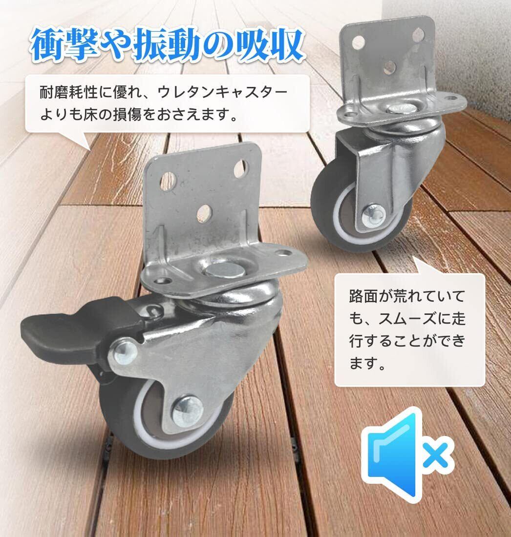L型 キャスター 4個セット L型プレート ブレーキ付き 1.25インチ 耐荷重 68kg 自在車 キャスター ネジ付き 静音 360度回転 ゴム車輪 ストッパ 固定 キャスター DIY 簡単設置 高耐久性 (ブレーキ有2個 + ブレーキ無2個)