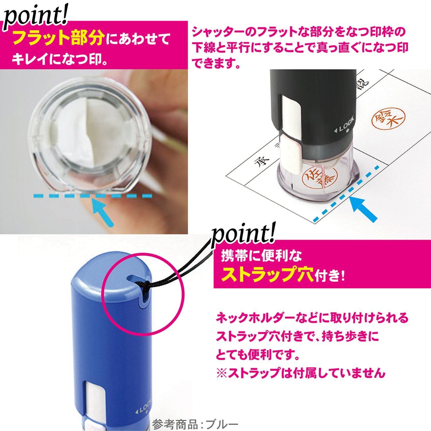 【特長】キャップレスタイプ・ストラップホール付き