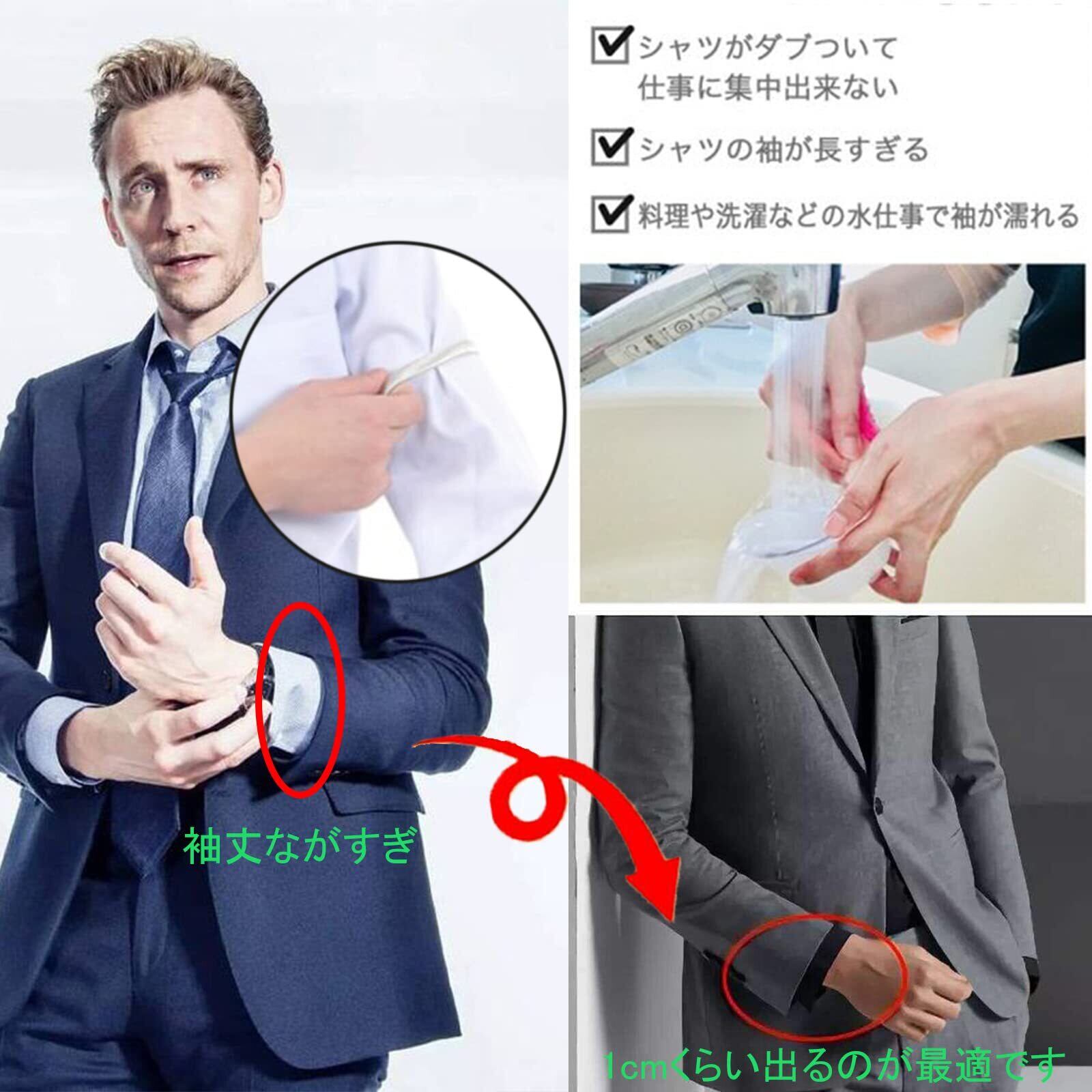 【バネ式仕様に使用簡単です】アームバンドは、バックルで固定などの手間がかからず、腕に通すだけで装着できるスプリング仕様となっております。サッと腕に通すだけで、お好みの袖丈に簡単調節できます。締め付け感が少なく伸びが良い、袖が長いワイシャツに簡単に対応、素早く袖丈を調整します。バネ式で伸縮性にも優れているため、腕の太さに合わせてお使いいただけます。衣服の袖をちょうどいい位置に調節しやすくなっております。